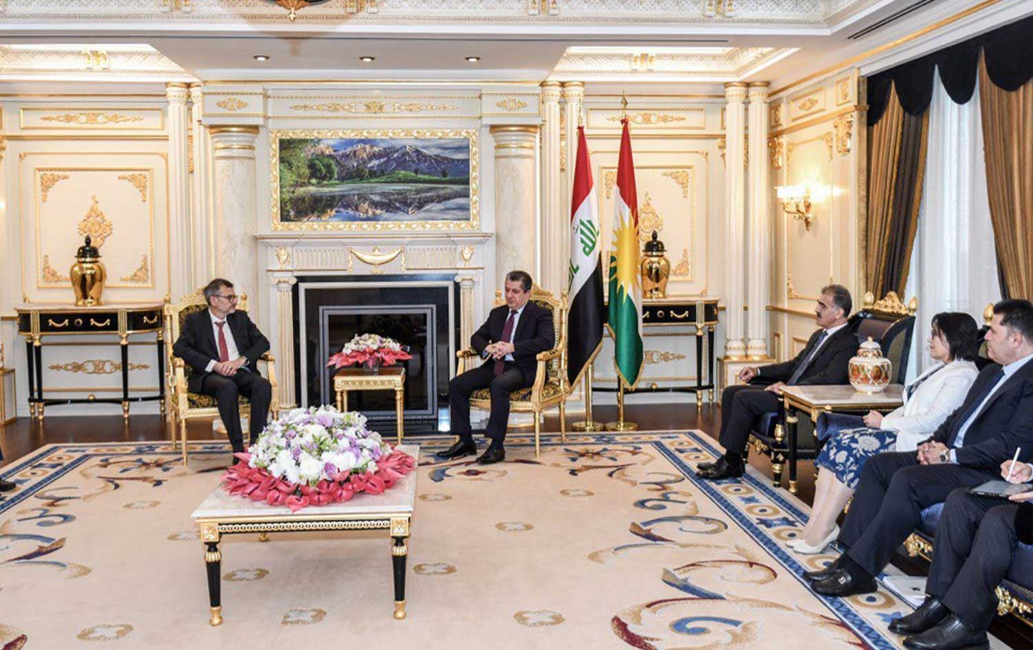 Serokwezîrê Herêma Kurdistanê Mesrûr Barzanî li Hewlêrê pêşwaziya Serokê Tîma Serbixwe ya Çavdêriya Stratejîk a Mîsyona Neteweyên Yekbûyî ya Îraqê (UNAMI) Volker Perthes kir.