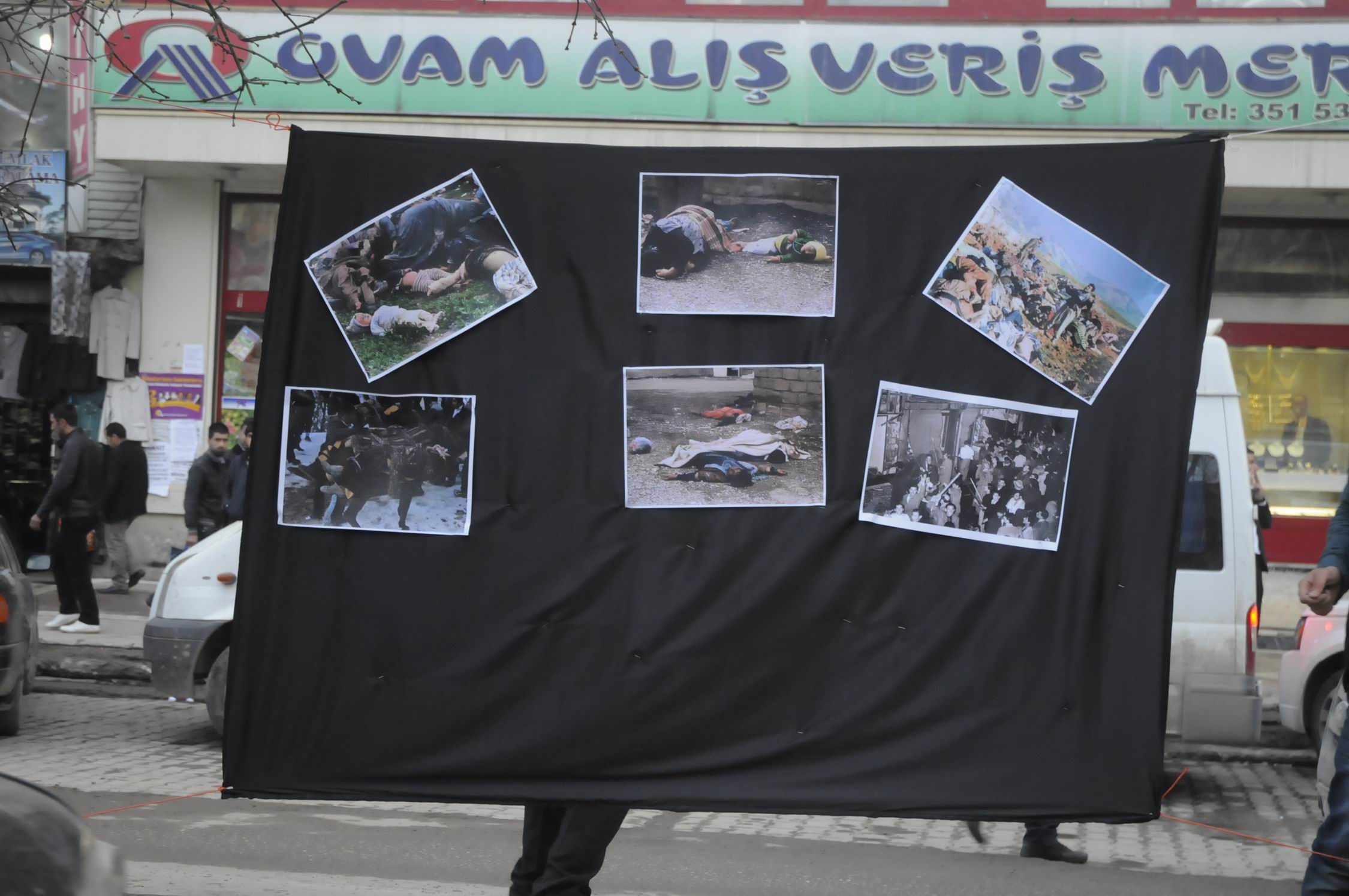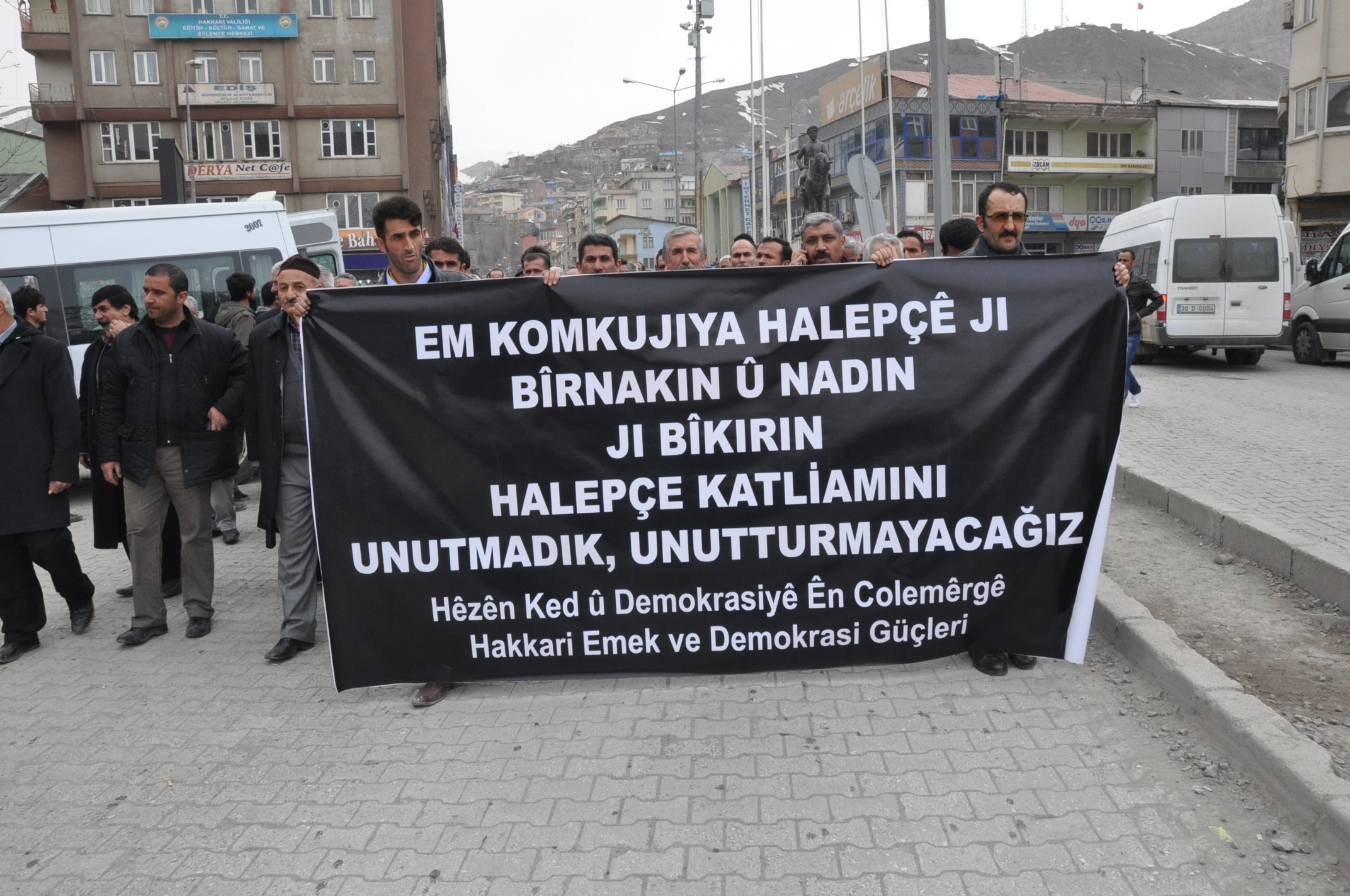 tim dirûşmên “Duh Helebce Îro Roboskî”, “Helebce nayê jibîrkirin”,