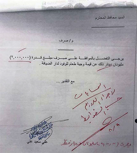 Nivîskar û rojnamevan û şirovekarê siyasî Arif Qurbanî li ser rûpela xwe ya taybet a medyaya civakî ya facebookê çendîn belgename belav kirine û eşkere dike ku bi tometa hederkirina wan pereyan, dadgehê fermana desteserkirinê derbarê Parêzgarê Kerkûkê yê bi Wekalet Rakan Cibûrî de derxistiye.