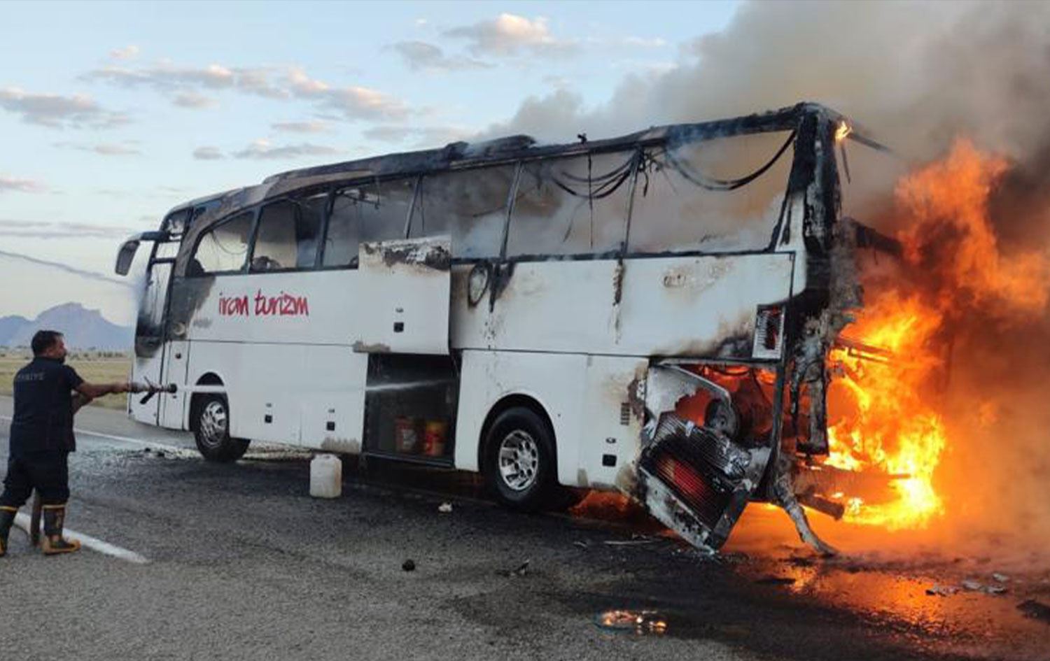 Hewlêr (Rûdaw) - Li navçeya Bazîd a ser bi Agiriyê ya Bakurê Kurdistanê otobuseke rêwiyan a ku ji Îranê vedigeriya ji nişka ve agir bi beşa wê ya motorê ket û di demeke kurt de mezin.