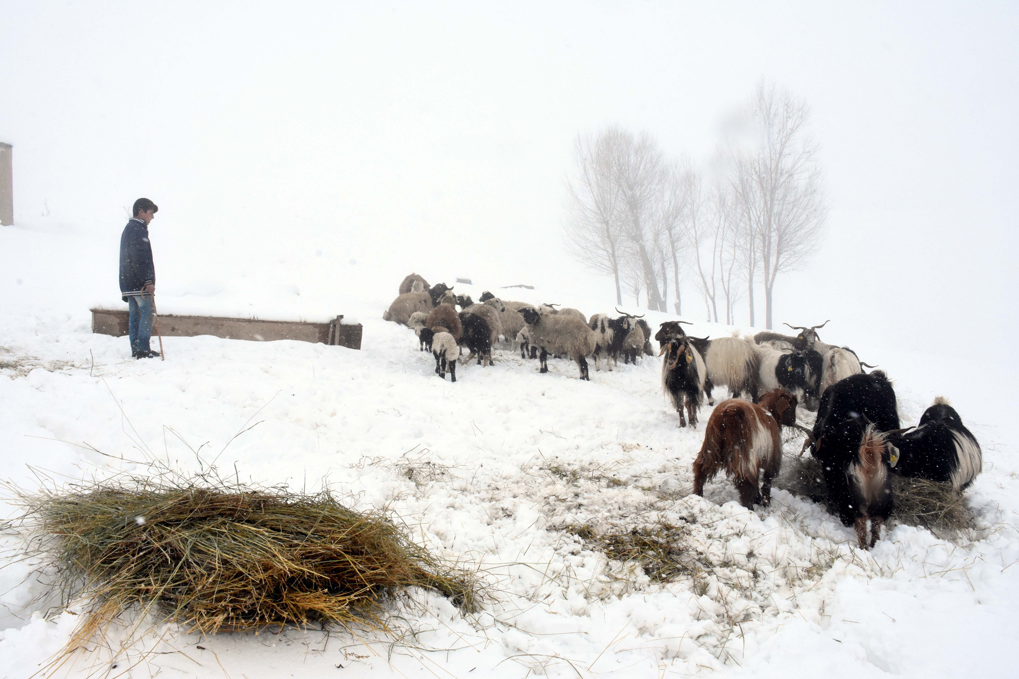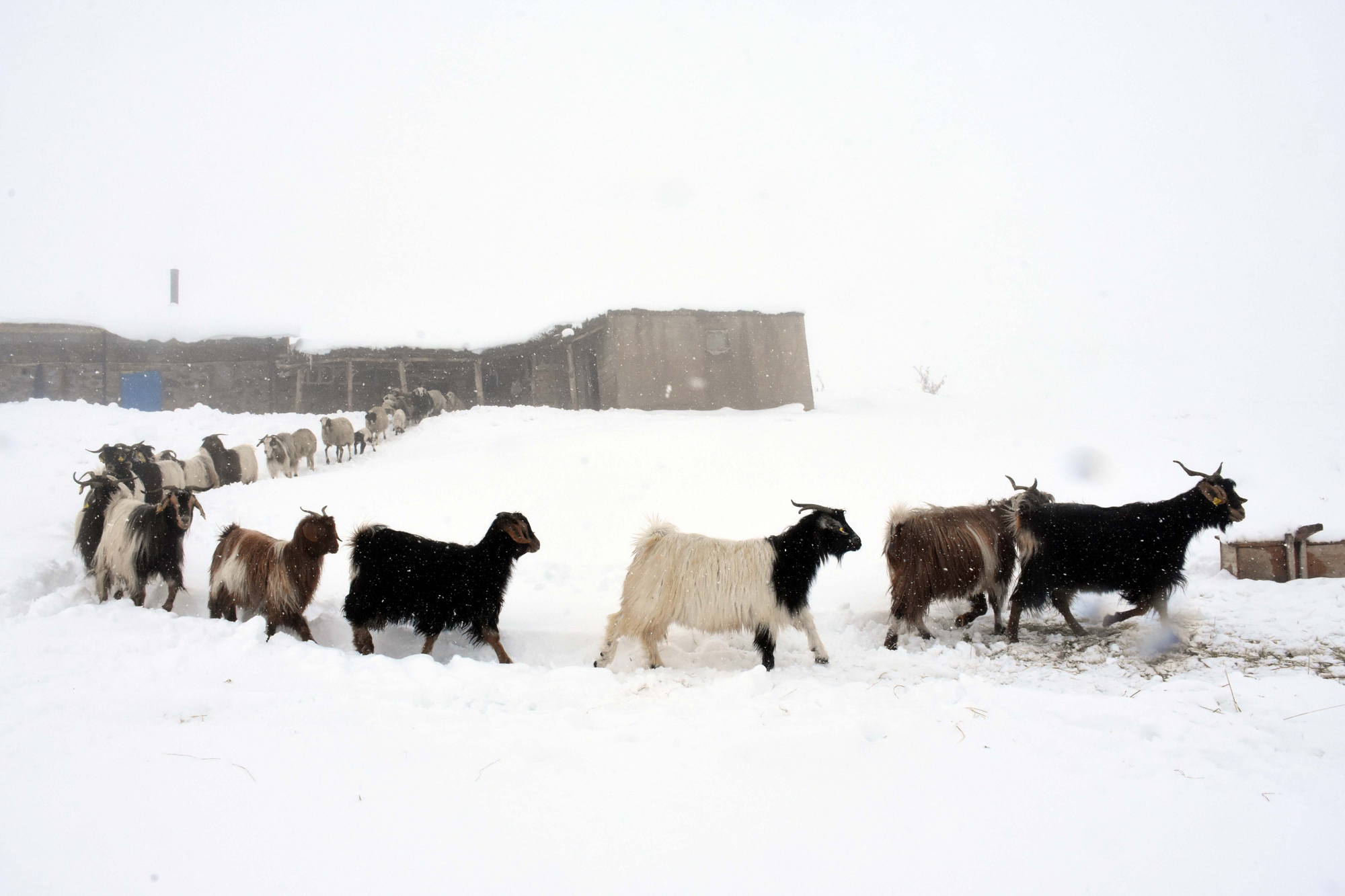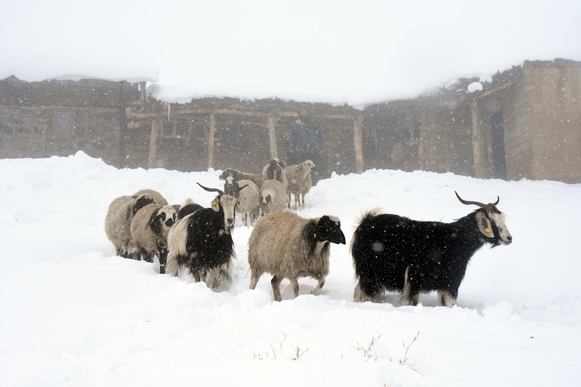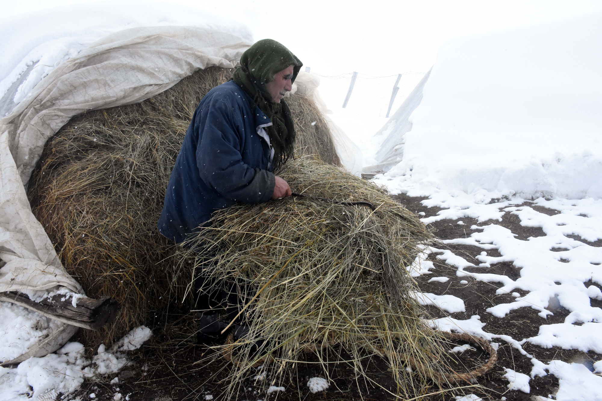 Li gundên parêzgeha Mûşê ya Bakurê Kurdistanê ku rêyên wan ji ber barîna berfê hatine girtin, gundî heywanên xwe bi zehmetî xwedî dikin.