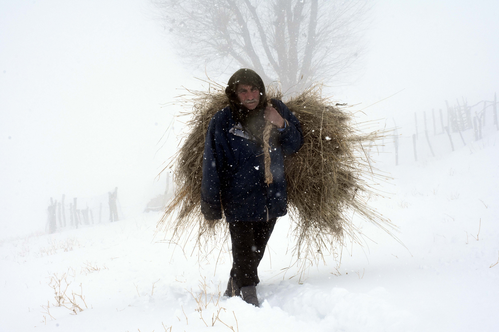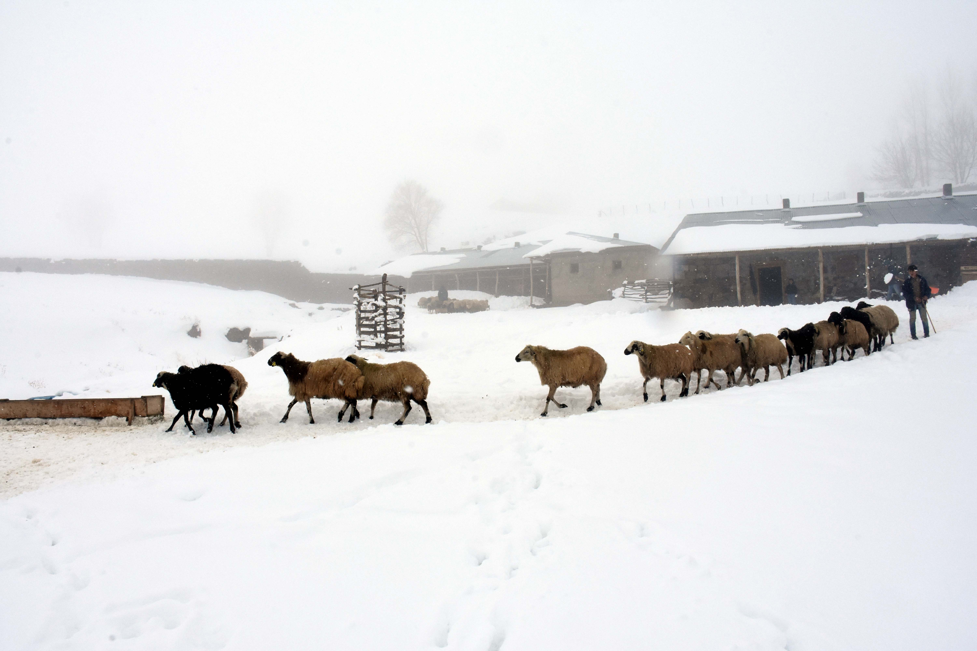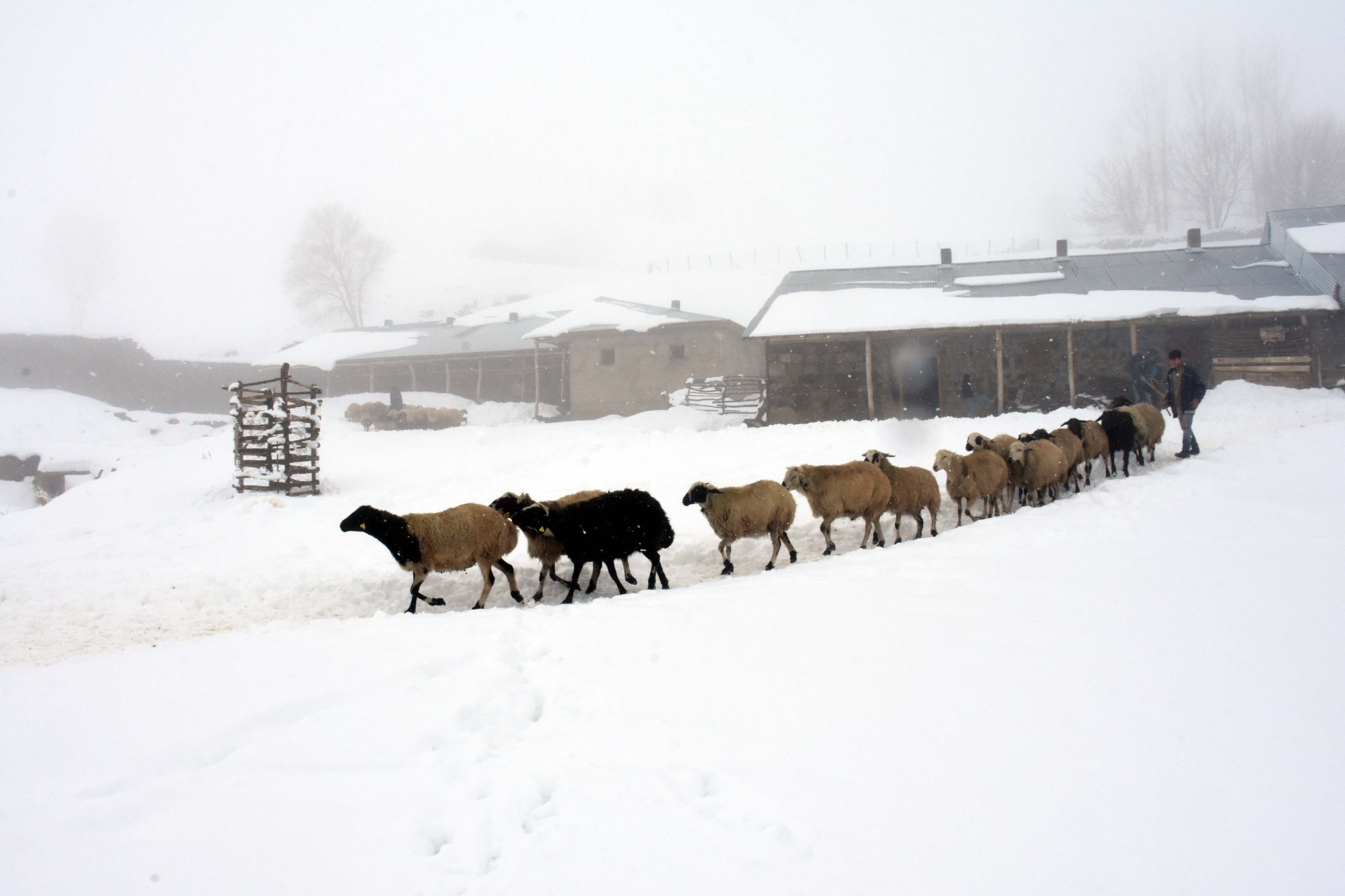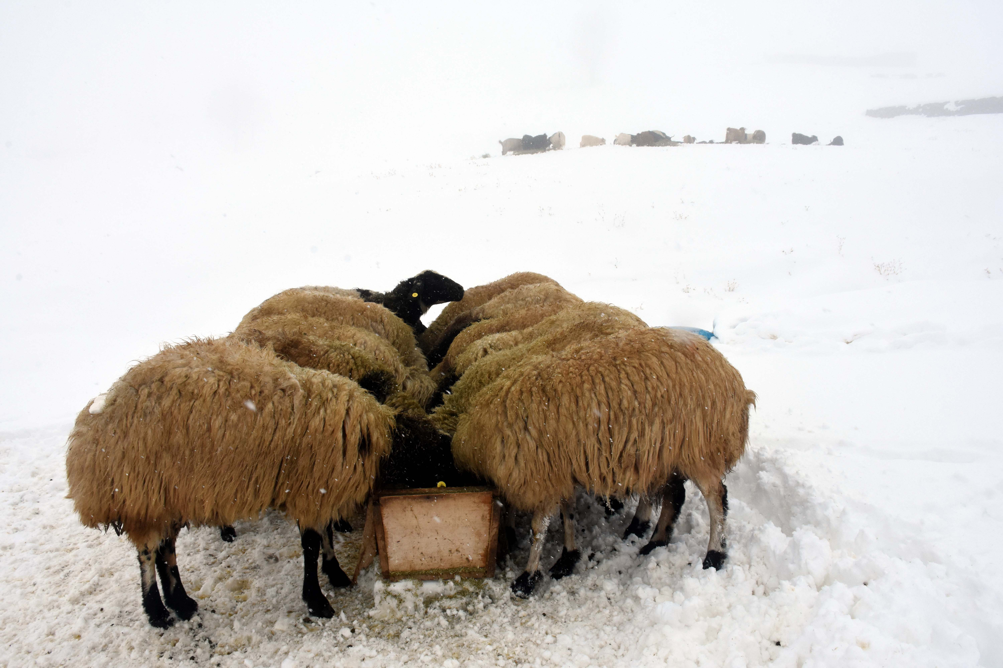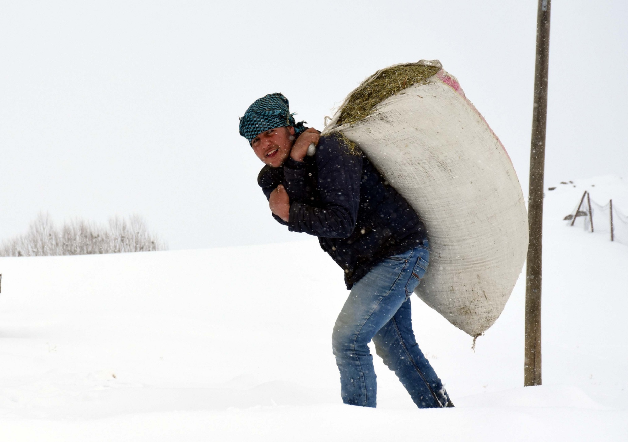 Li gundên parêzgeha Mûşê ya Bakurê Kurdistanê ku rêyên wan ji ber barîna berfê hatine girtin, gundî heywanên xwe bi zehmetî xwedî dikin.