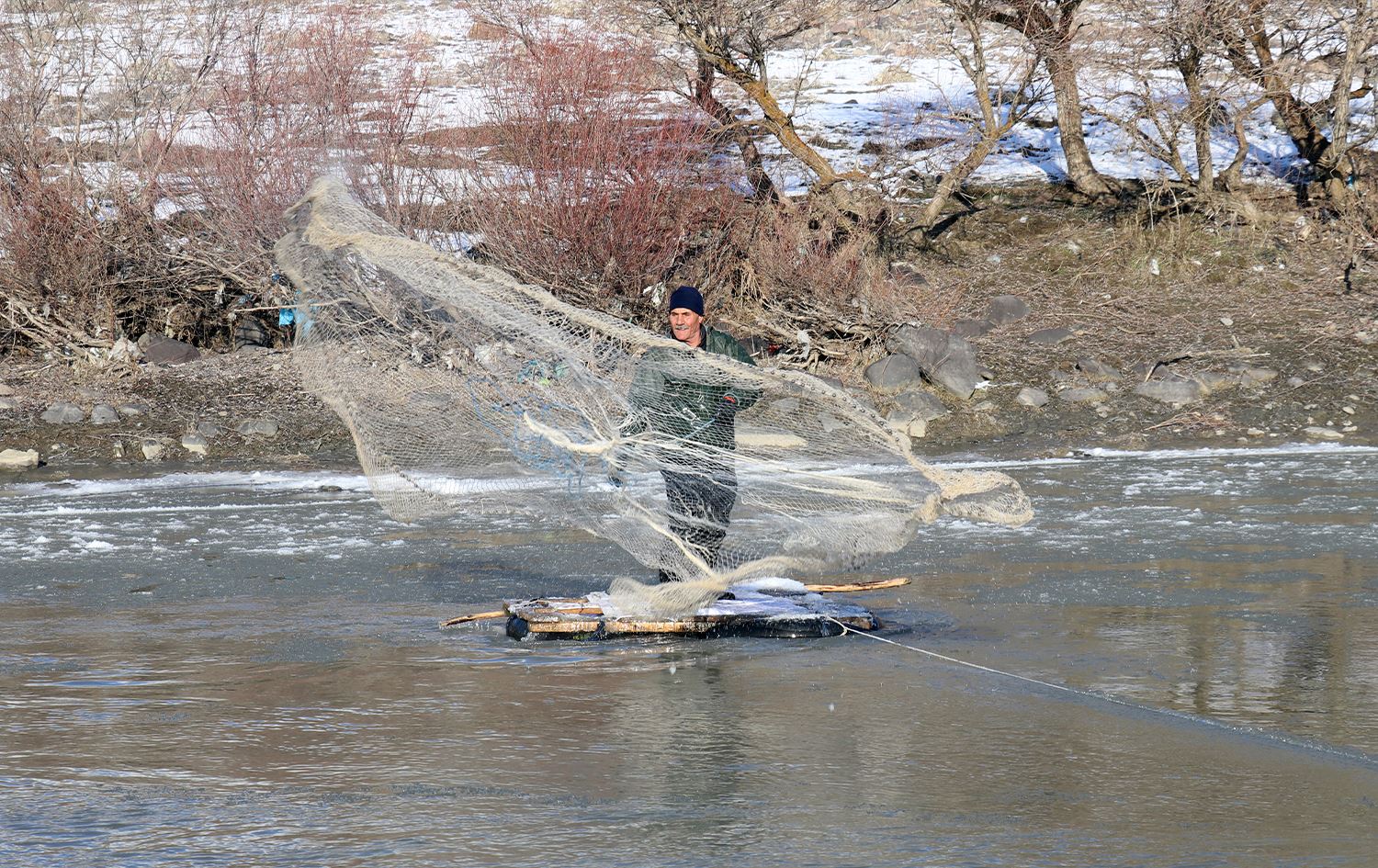 “Pileya germahiyê bin sifirê 15-20 pile ye û em masiyan digirin. Wekî hûn dibînin di Çemê Muradê re qeşa diherike.