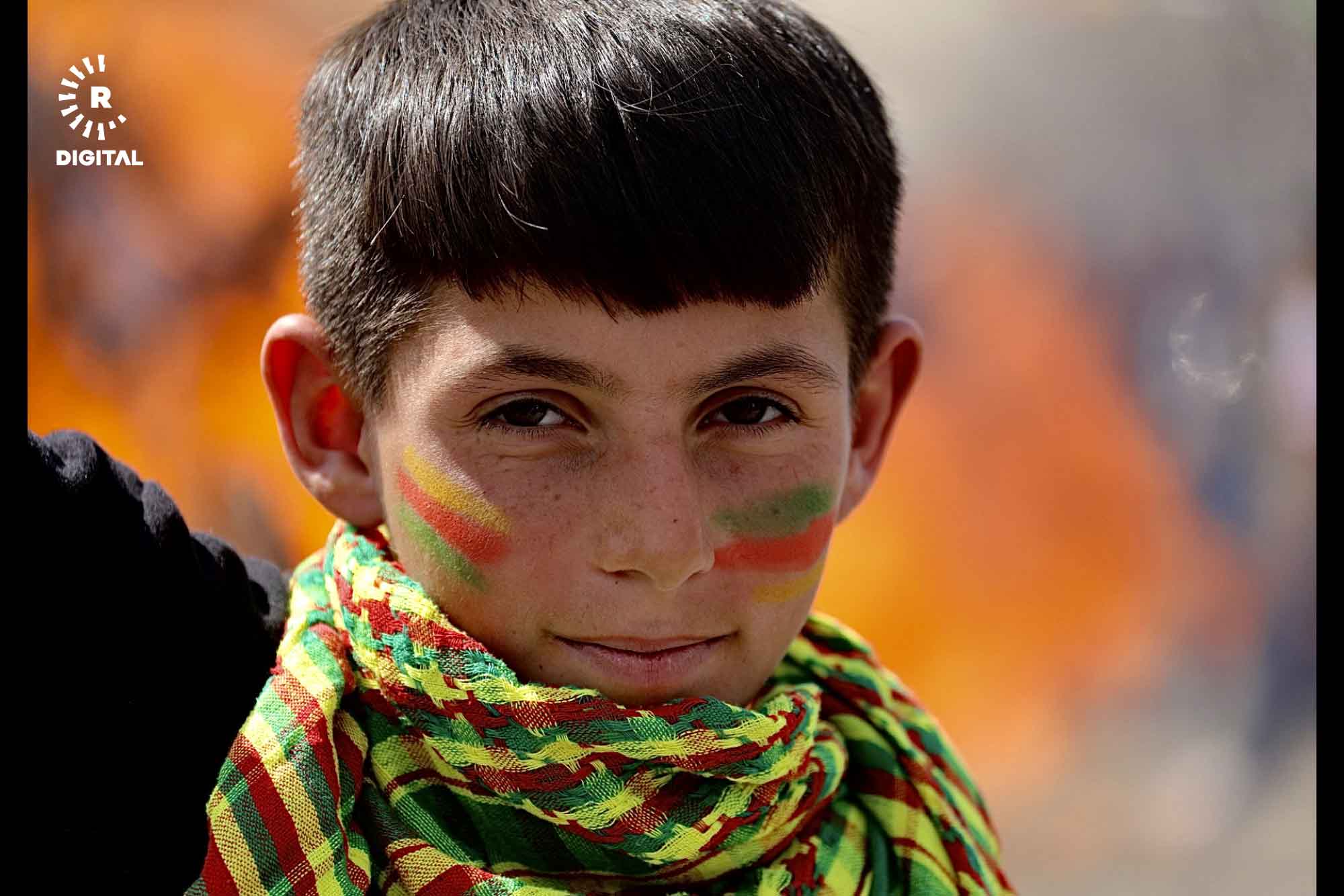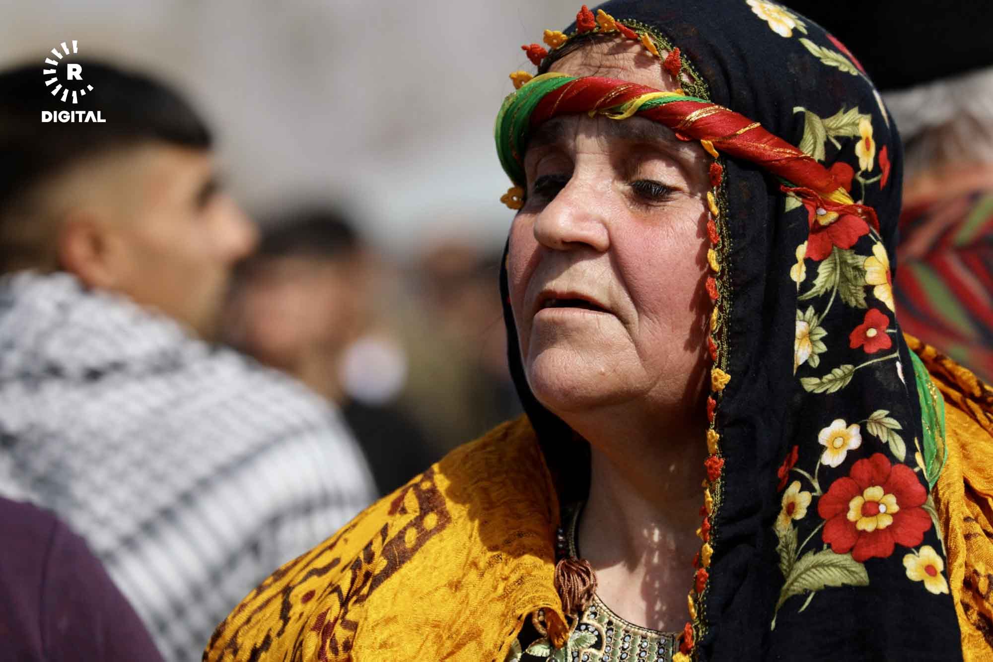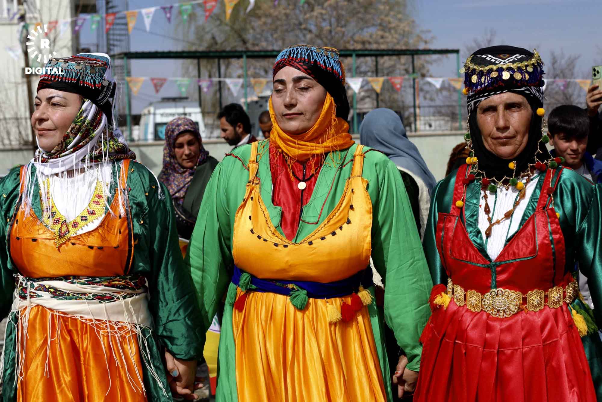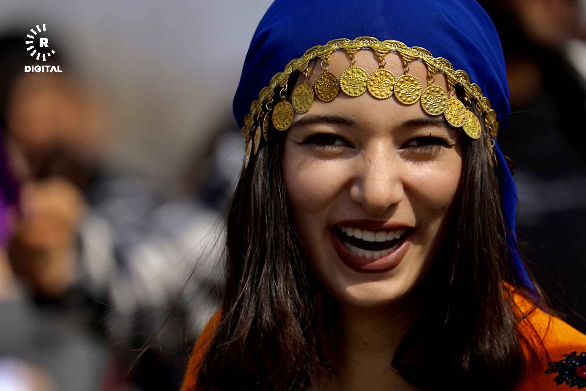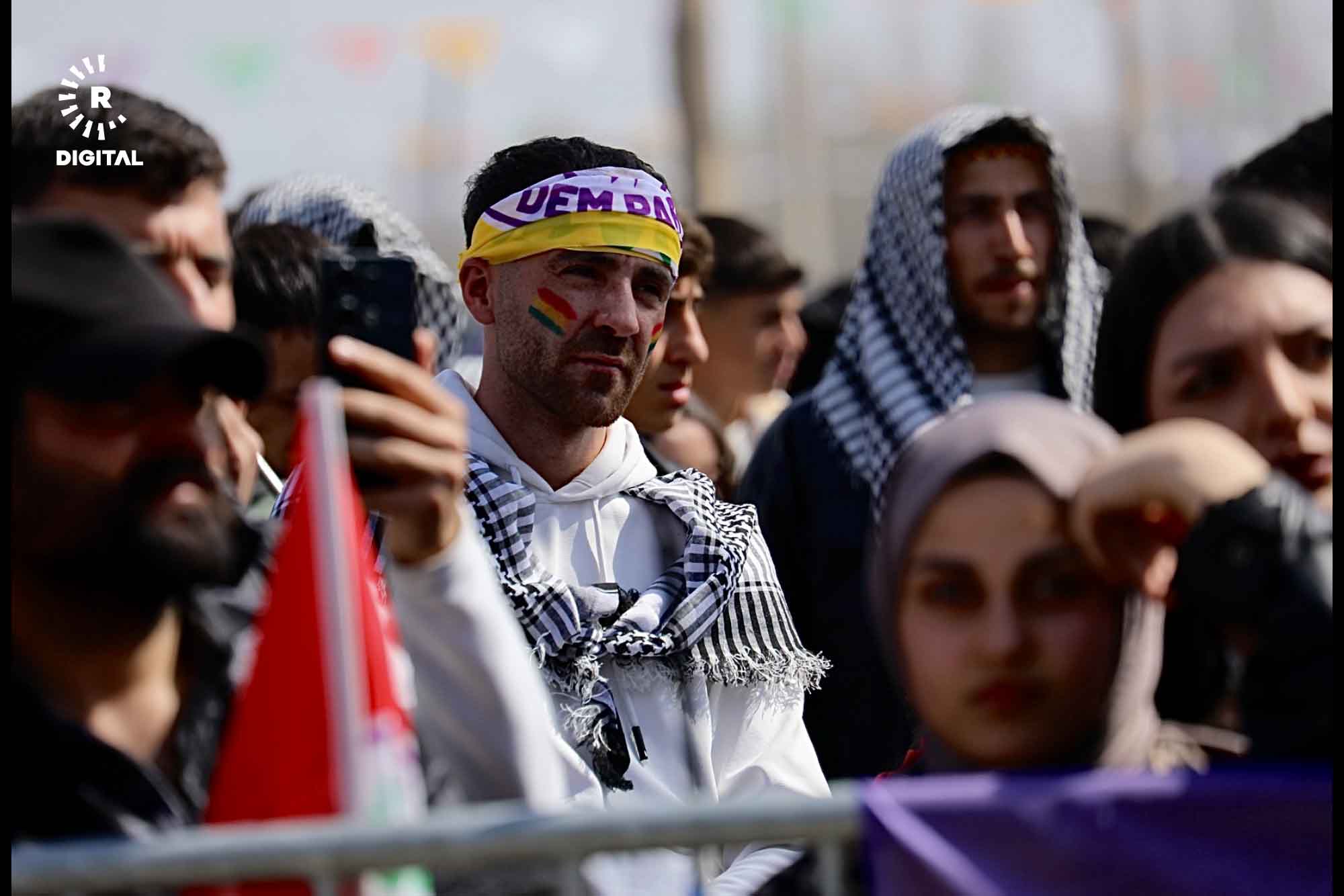 Bi hezaran Kurd ji bo Newrozê li hev civiyan û cilên rengîn ên Kurdan qada Newrozê şên kir.