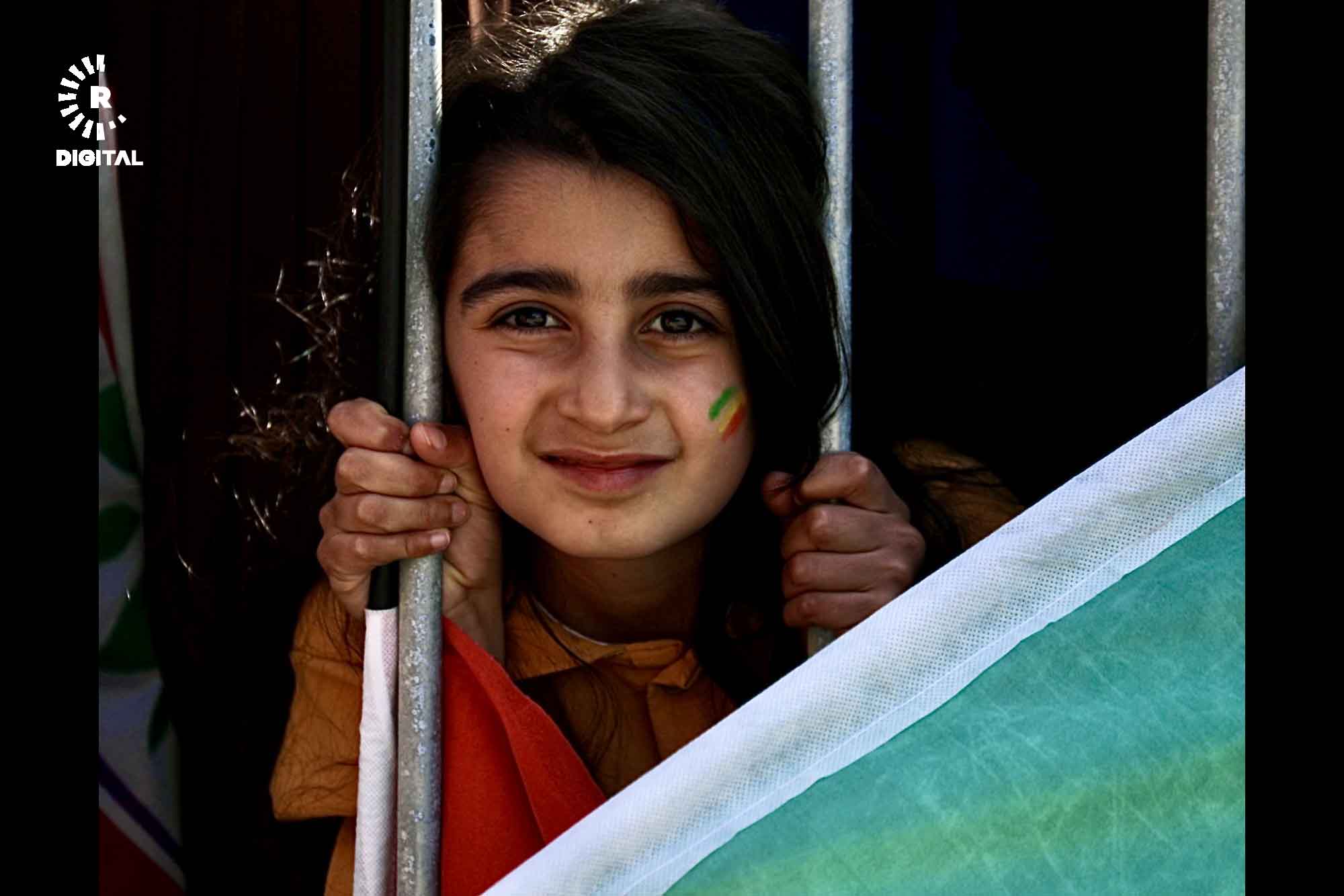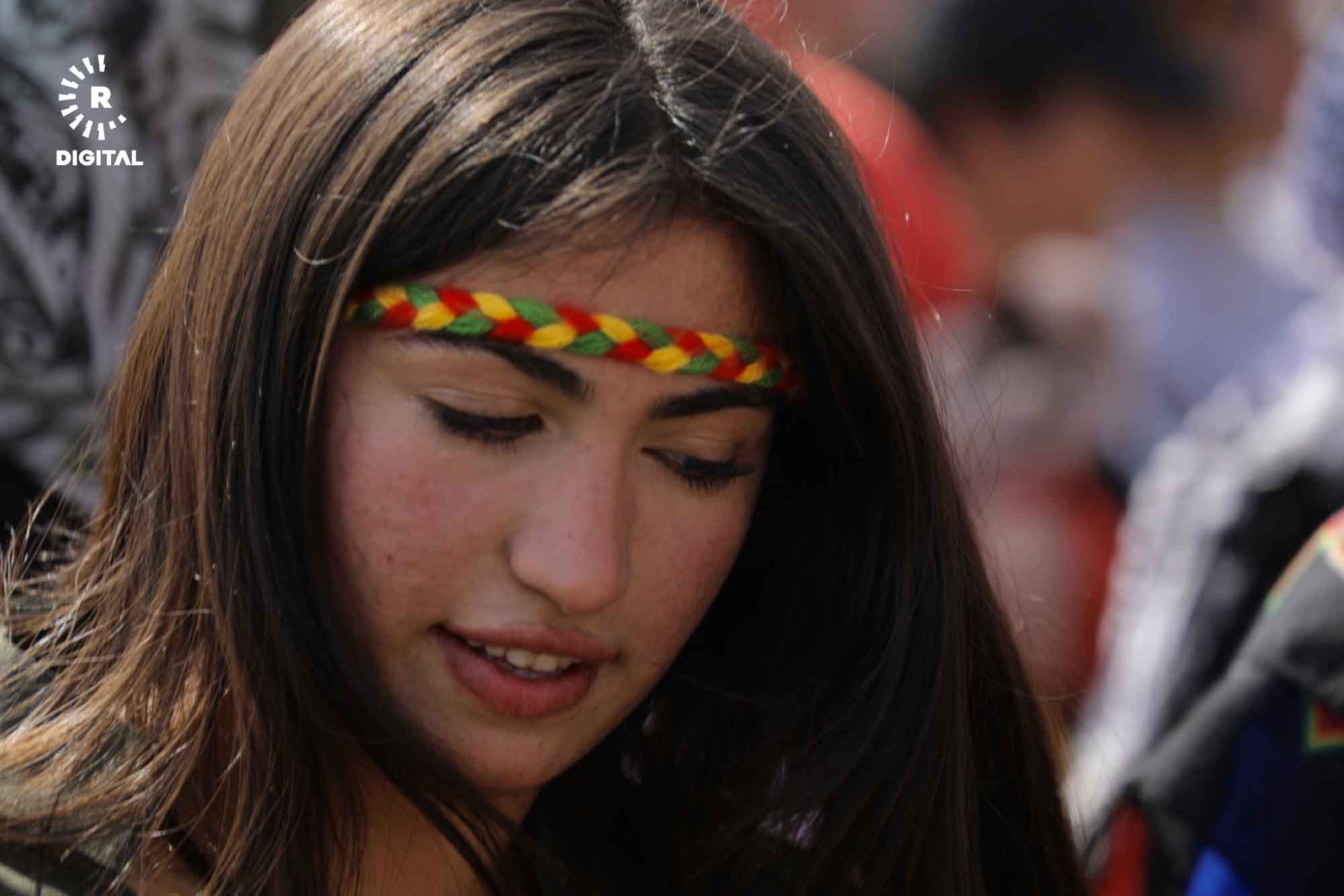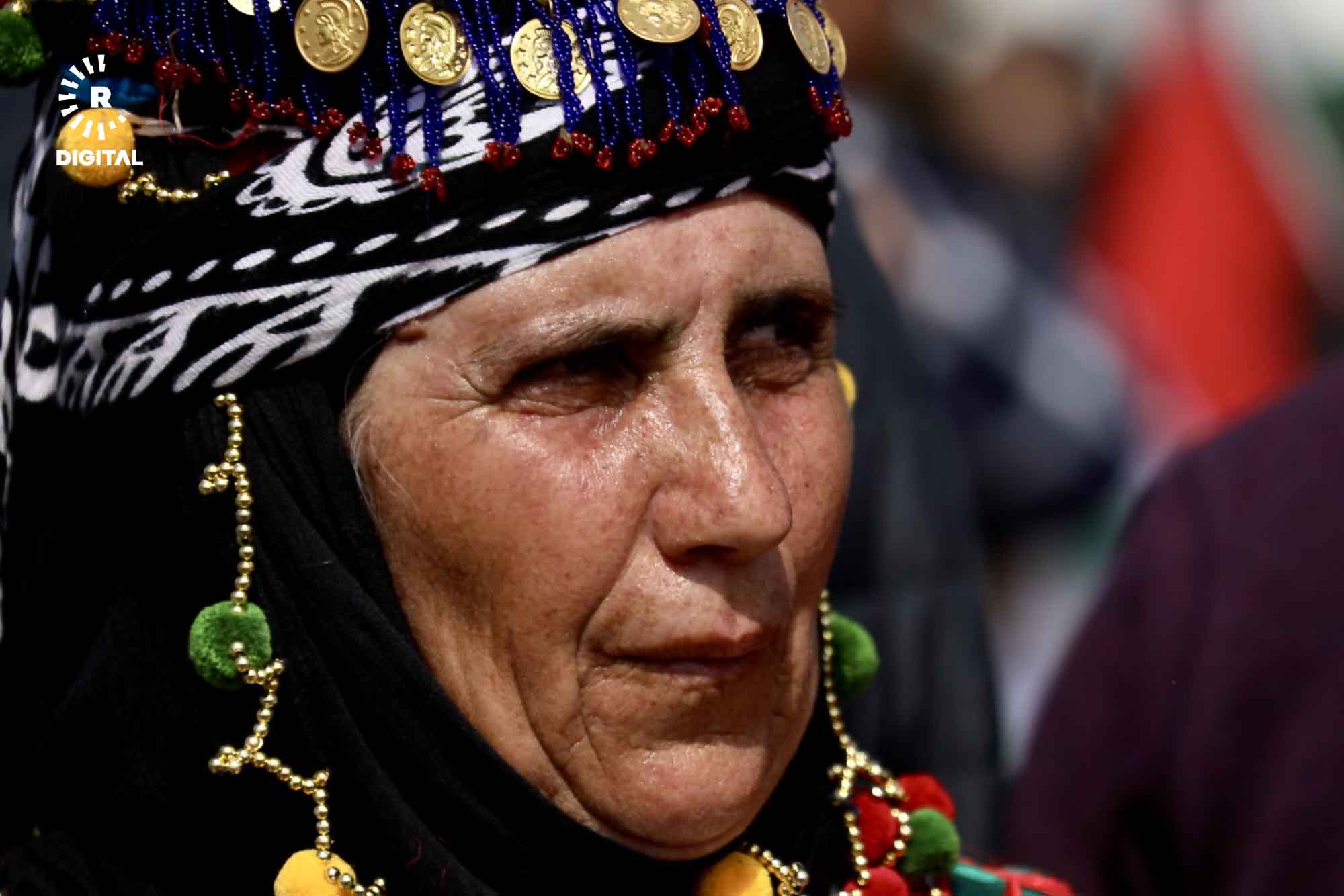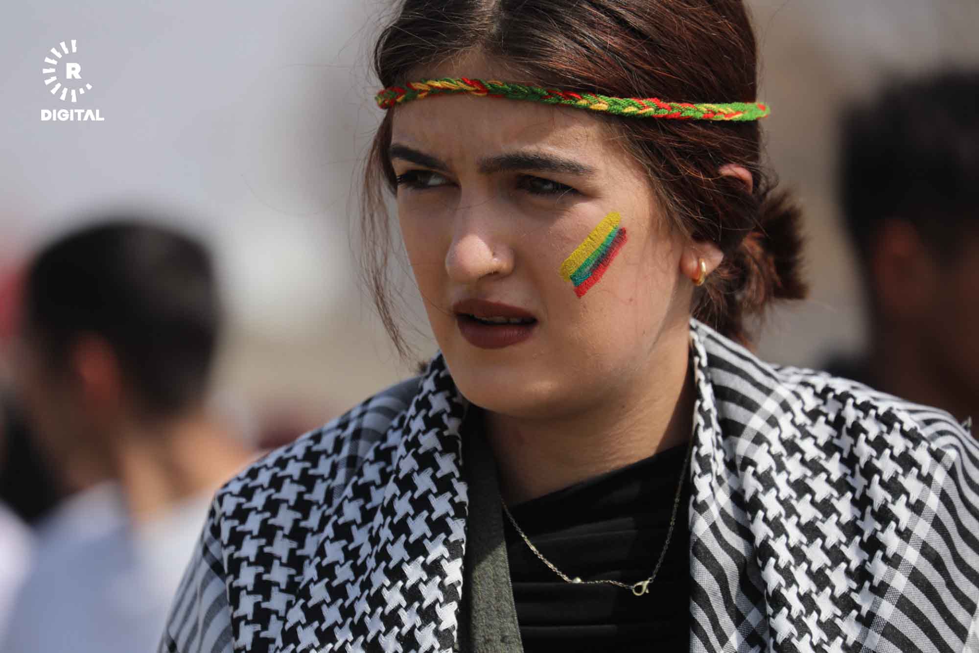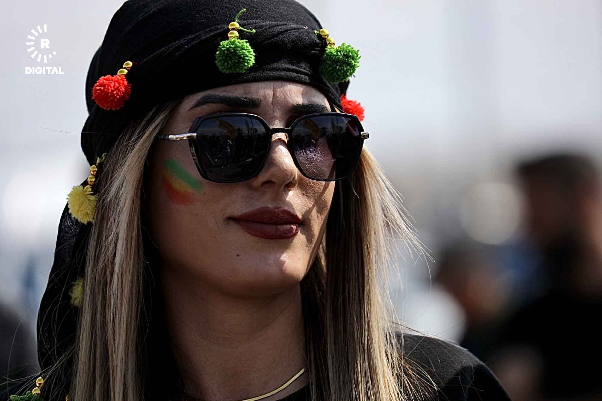 Bi hezaran Kurd ji bo Newrozê li hev civiyan û cilên rengîn ên Kurdan qada Newrozê şên kir.