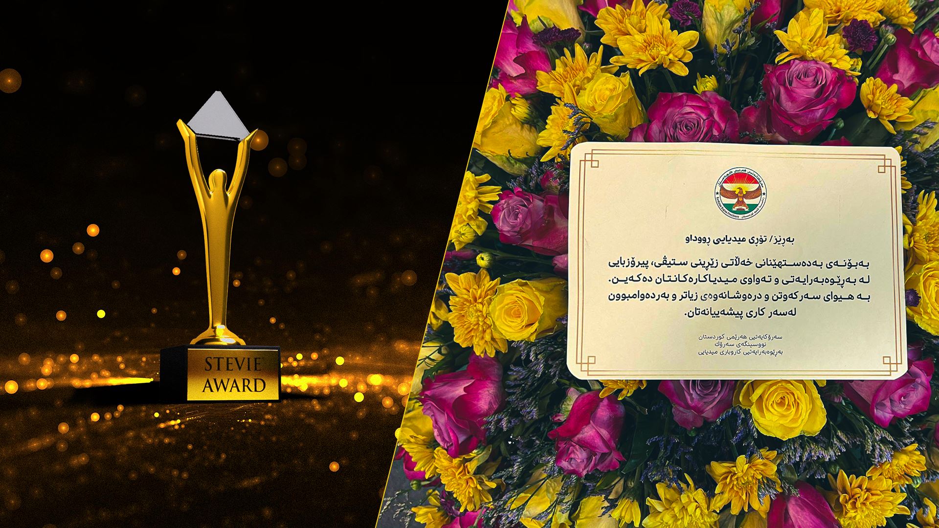 “Em rêveberî û tevên xebatkarên Tora Medyayî ya Rûdawê ku Xelata Zêrîn a Stevieyê wergirtiye pîroz dikin.