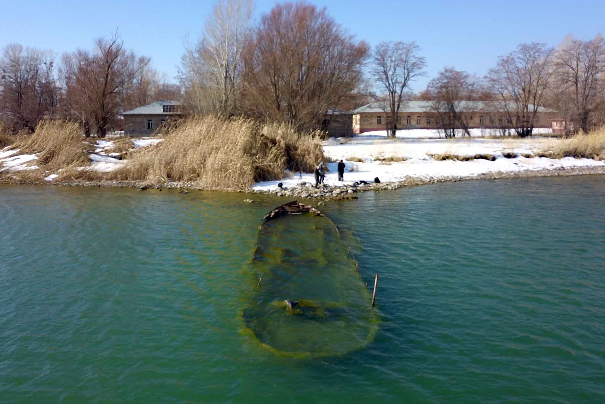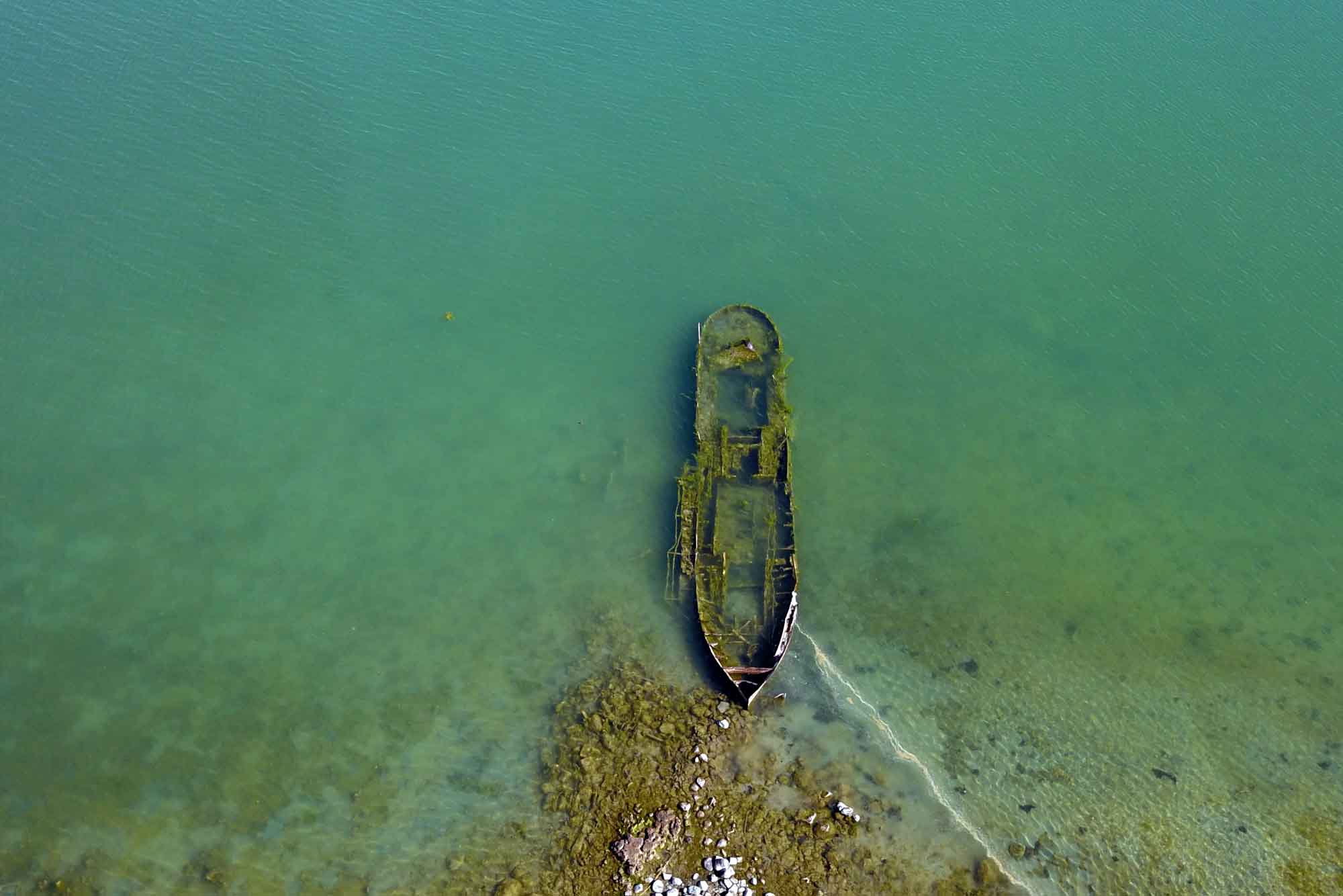 Ji ber kêmbûna avê heta niha zeviyên bi tapû yên welatiyan, keştiyên masîgiran, gor, stûnên kelhan, kevirên neqişandî û her wisa mîkrobiyalitên ku di hezaran salan de çêdibin, derketibûn holê. Bi kêmbûna avê vê carê jî keştiyeke binavbûyî xuyan kir.