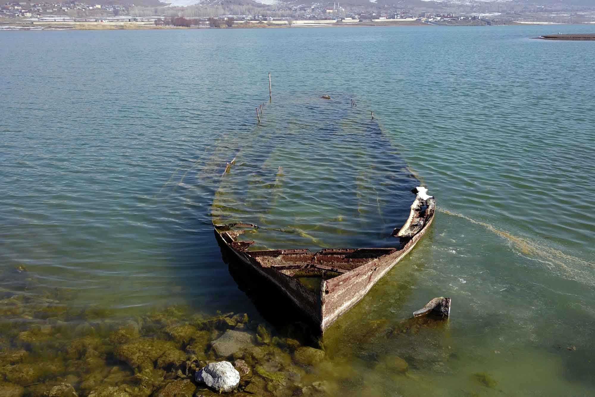 Li Gola Wanê bi kêmbûna avê bermahiy;n keştiya ku tê texmînkirin berî çend salan binav bûye, derketin holê.