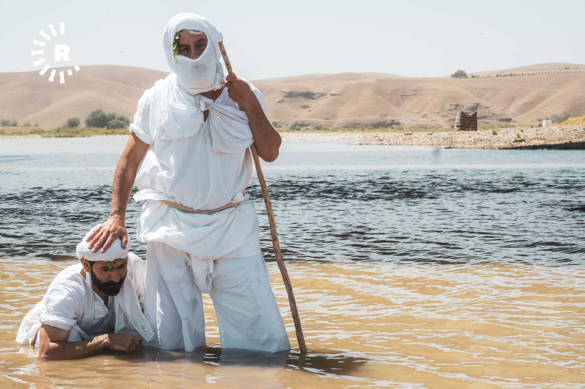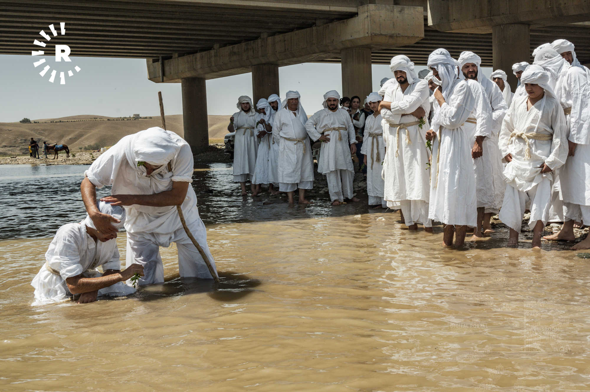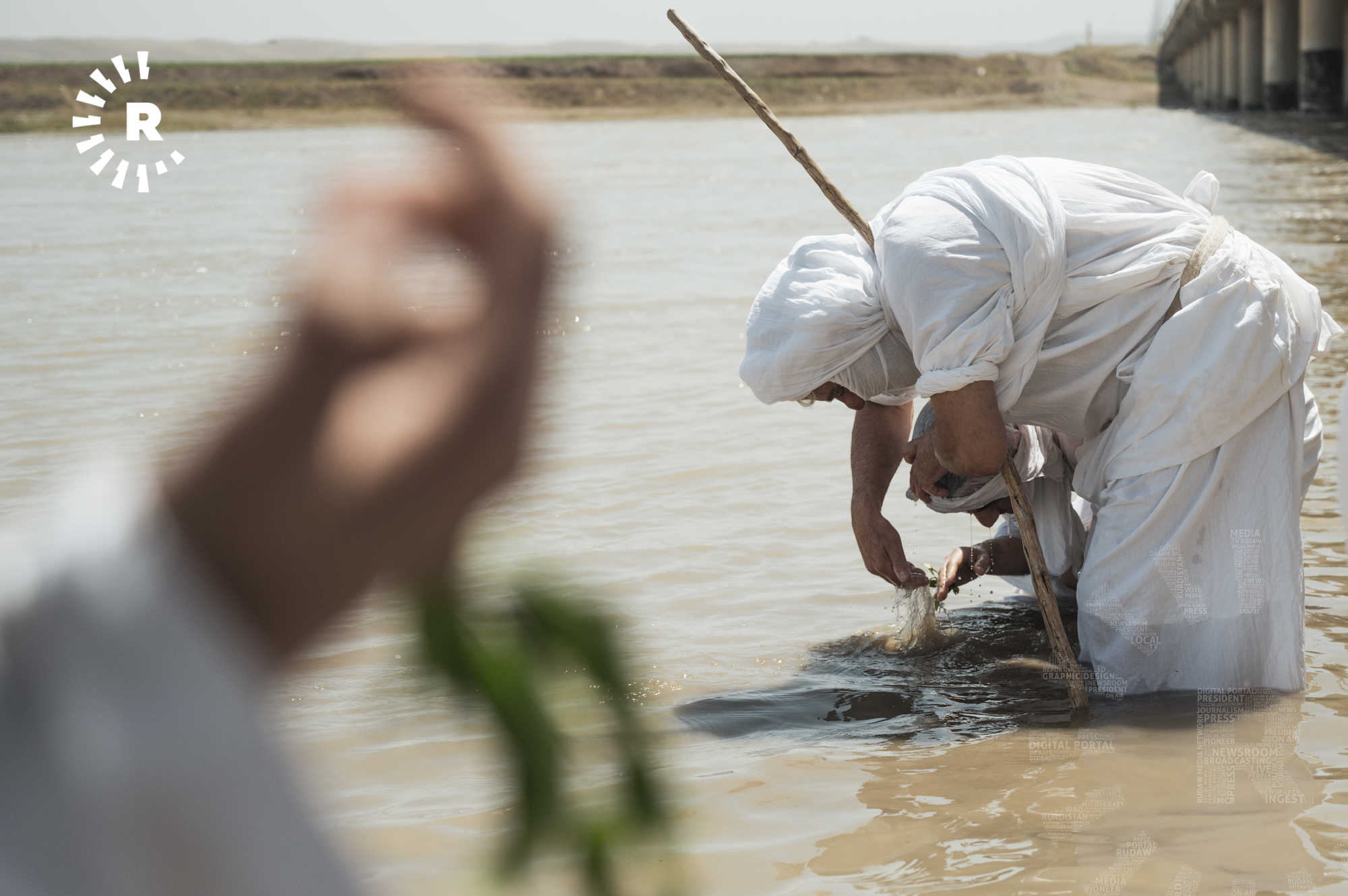 Şopînerên ola Sabiiyan (Mendayî) di cejnê de diçin qeraxên çem û dest bi nizayan dikin, berpirsên olî destên xwe datînin ser serê bawermandan û ava çem ser wan de dikin.