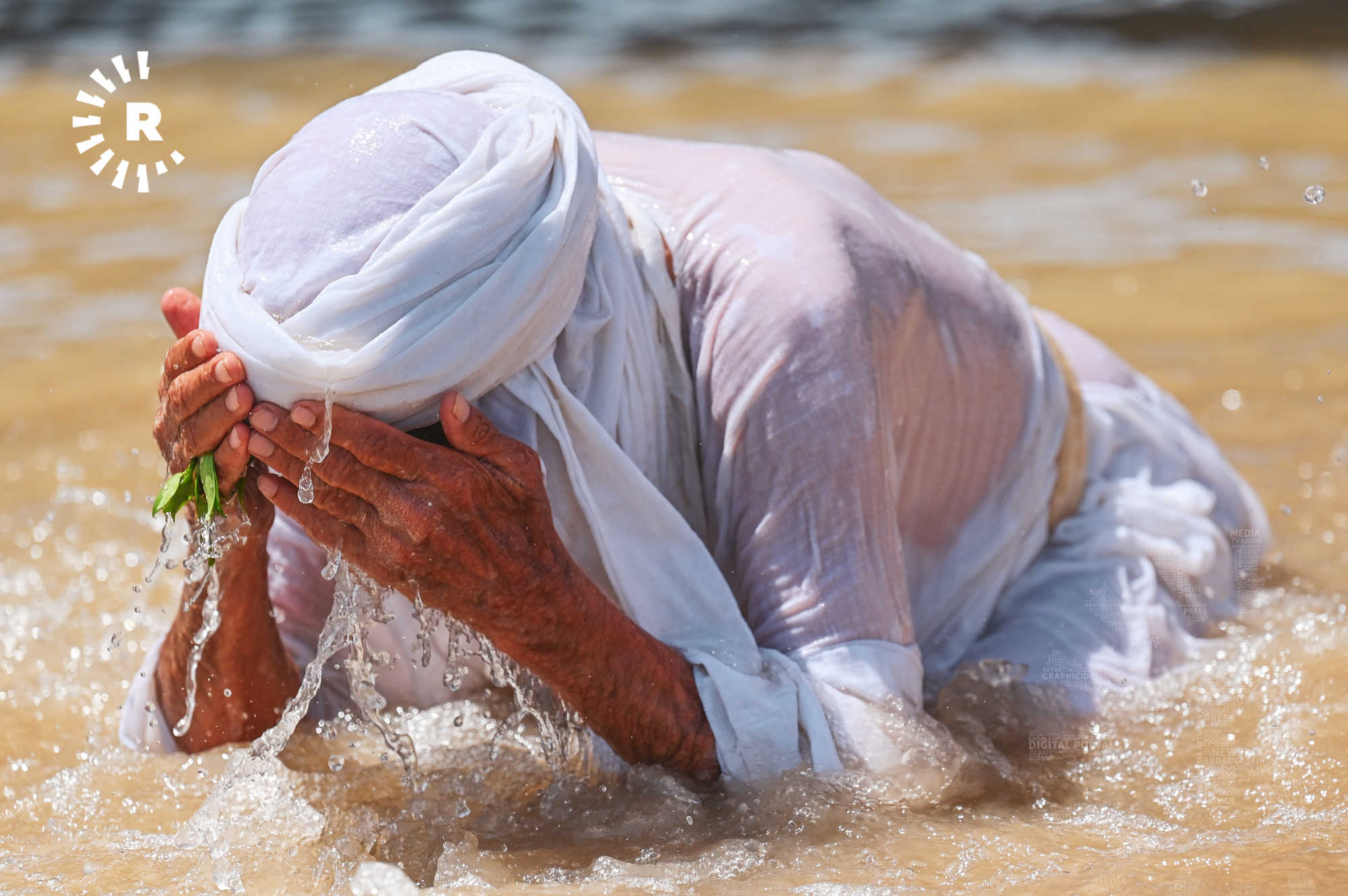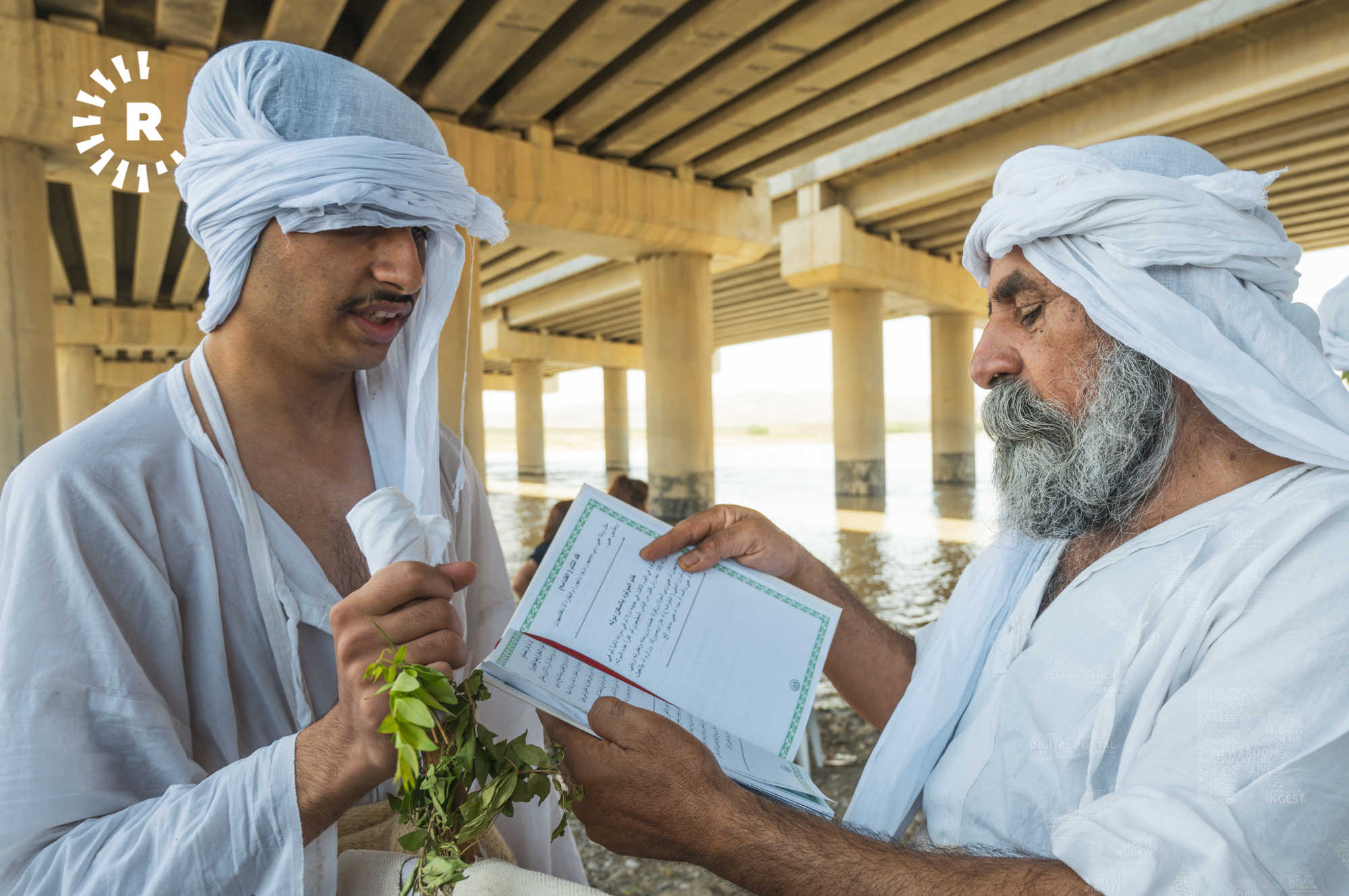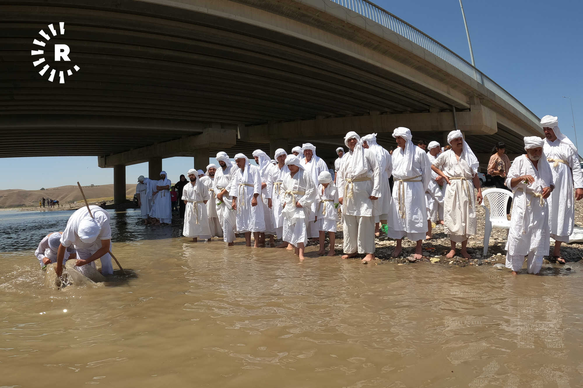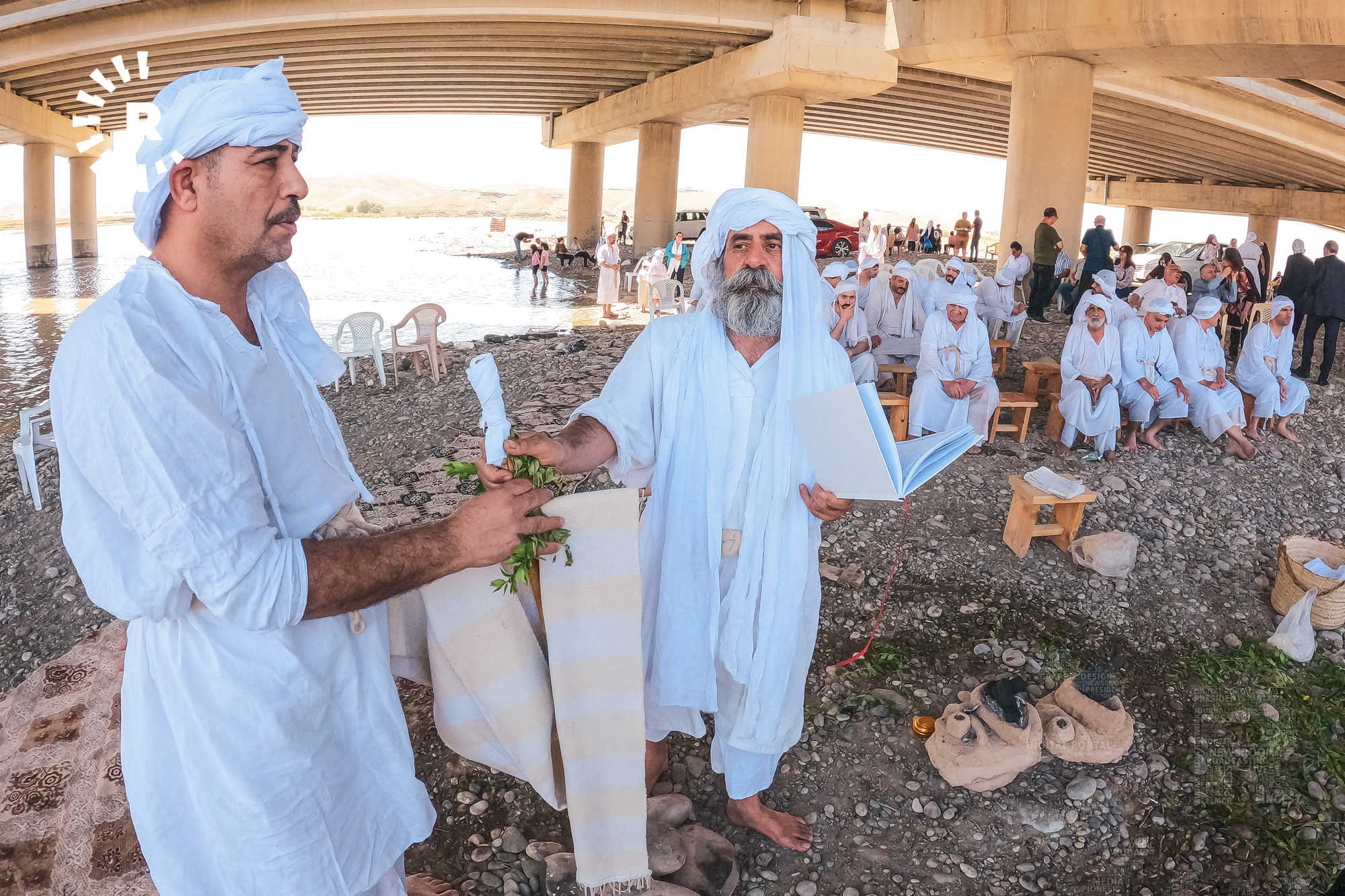 Şopînerên ola Sabiiyan (Mendayî) di cejnê de diçin qeraxên çem û dest bi nizayan dikin, berpirsên olî destên xwe datînin ser serê bawermandan û ava çem ser wan de dikin.