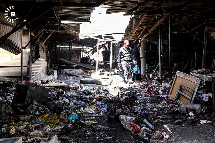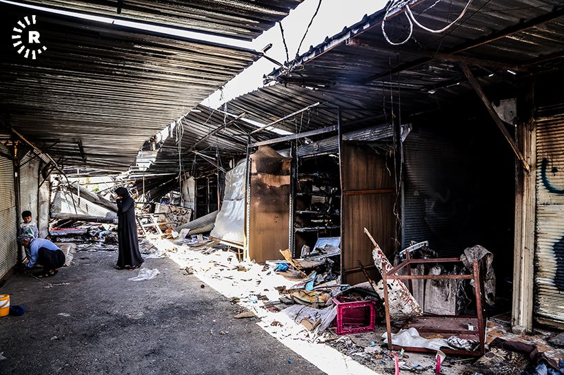 Hewlêr (Rûdaw) – Şeva yekemîn a Cejna Remezanê (15-06-2018) agir bi sûka taxa Kurdistanê ya Hewlêrê ket û di encamê de 120 dikan şewitîn.