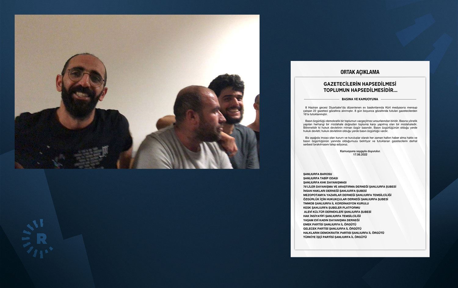Hewlêr (Rûdaw) - Li parêzgeha Riha ya Bakurê Kurdistanê Baroya Rihayê jî di nav de 16 saziyên bajêr bi daxuyaniyekê daxwaza azadkirina 16 rojnamevanên Kurd kirin.