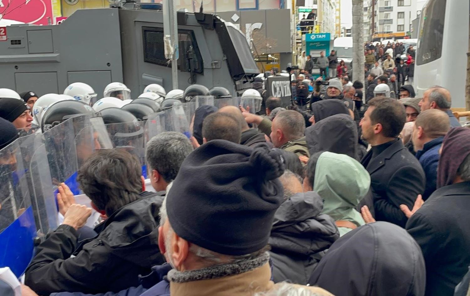Piştî ku dan û standinên bi polîsan re bêencam man, komekê xwest barîkatên polîsan derbas bike.