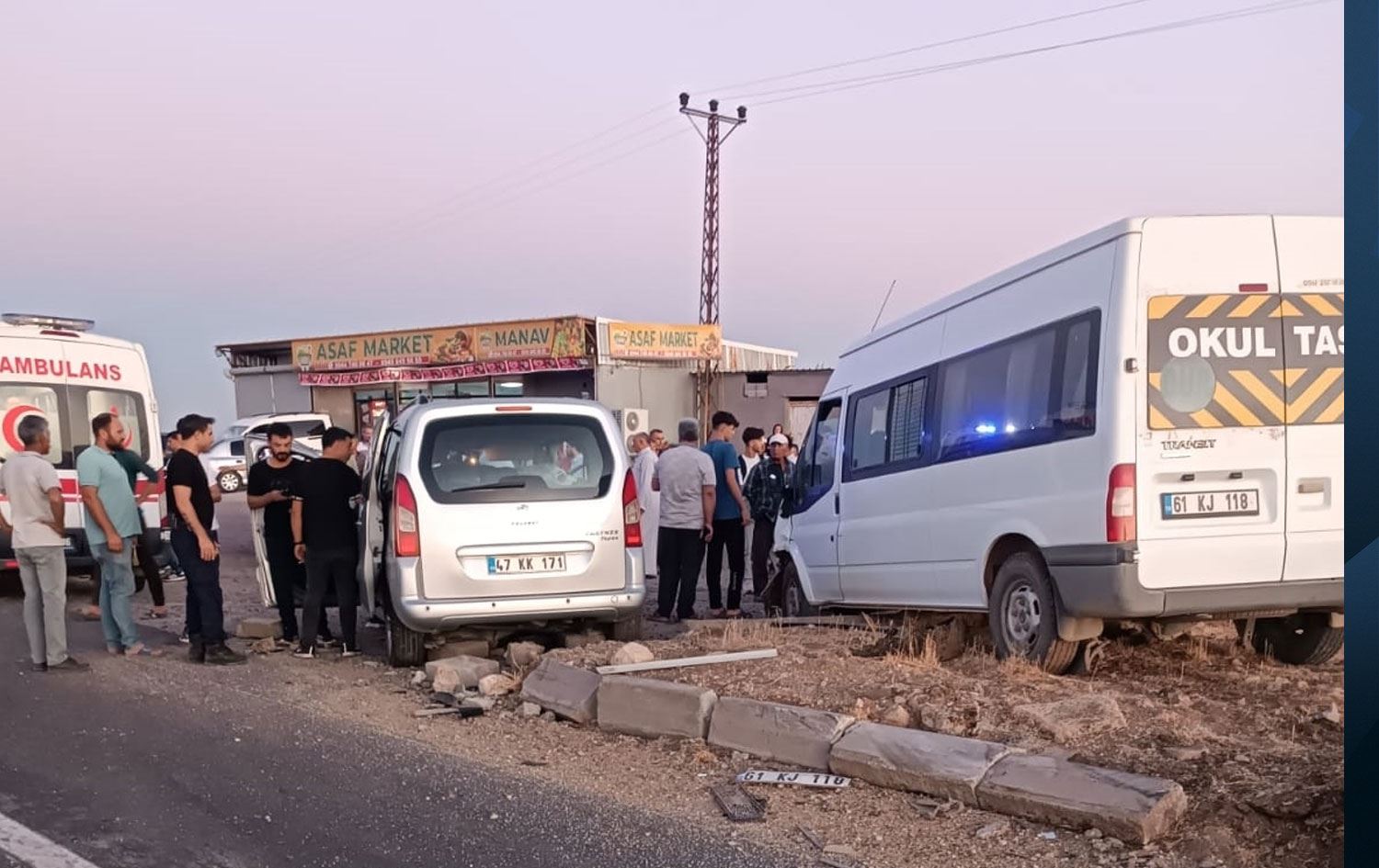 Mînîbuseke bi plakaya 61 KJ 118, otomobîleke tîcarî ya sivik a bi plakaya 47 KK 171 û otomobîleke din a bi plakaya 01 DDF 75 li bin guhê hev xist.