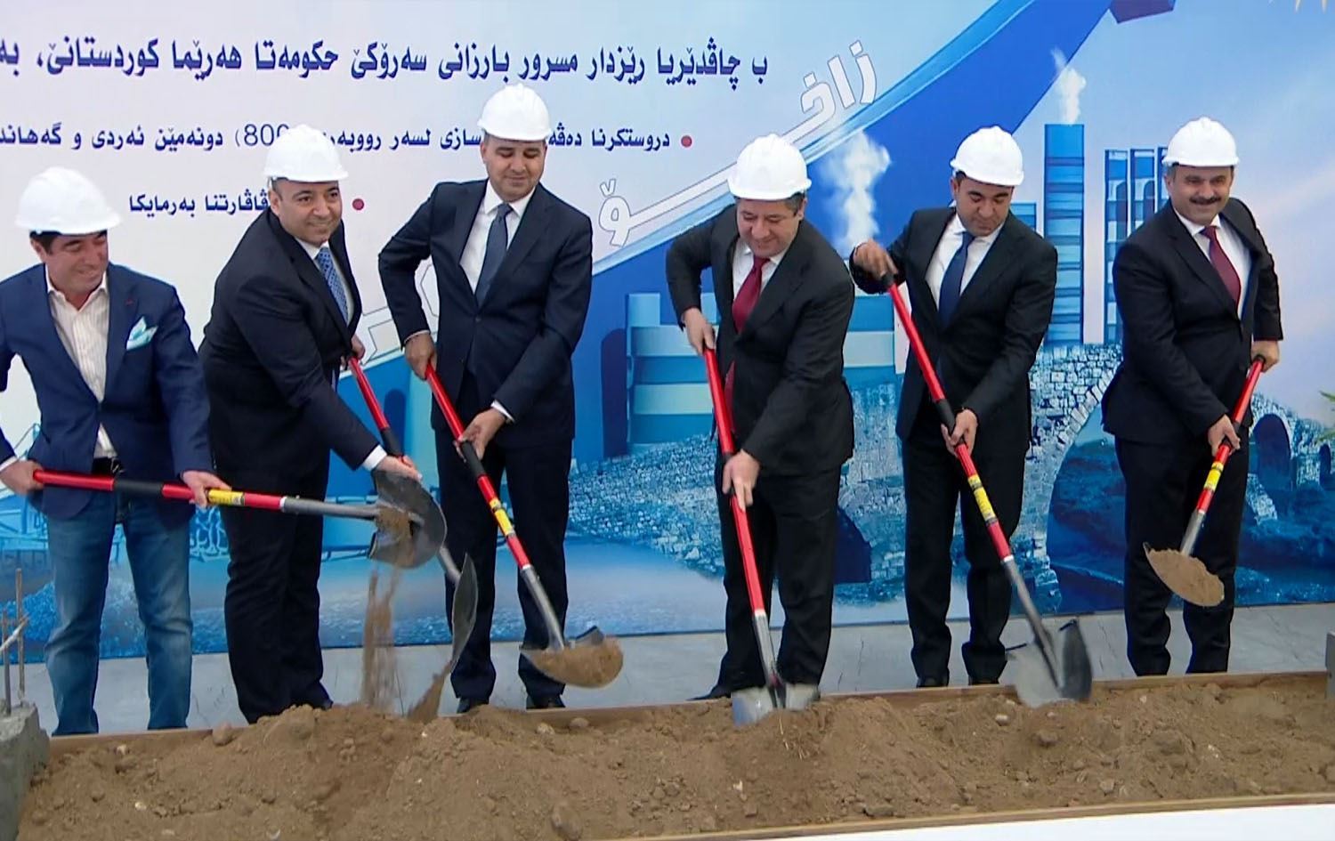 Serokwezîrê Herêma Kurdistanê Mesrûr Barzanî, beşdarî merasîma danîna kevirê bingehê yê Herêma Pîşesaziyê û kargeha jihevderxistina gilêşan bû.