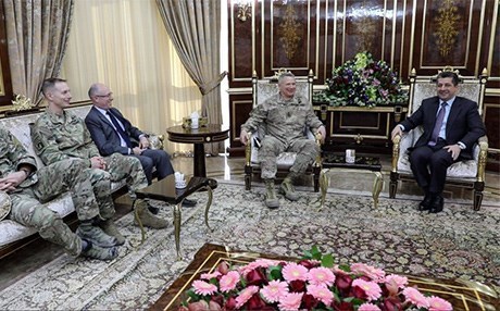 Hewlêr (Rûdaw) – Şêwirmendê Encûmena Asayişa Herêma Kurdistanê Mesrûr Barzanî û Fermandarê Hêzên Hevpeymaniya Navdewletî yê li Iraq û Sûriyê şerê DAIŞê gotûbêj kirin.