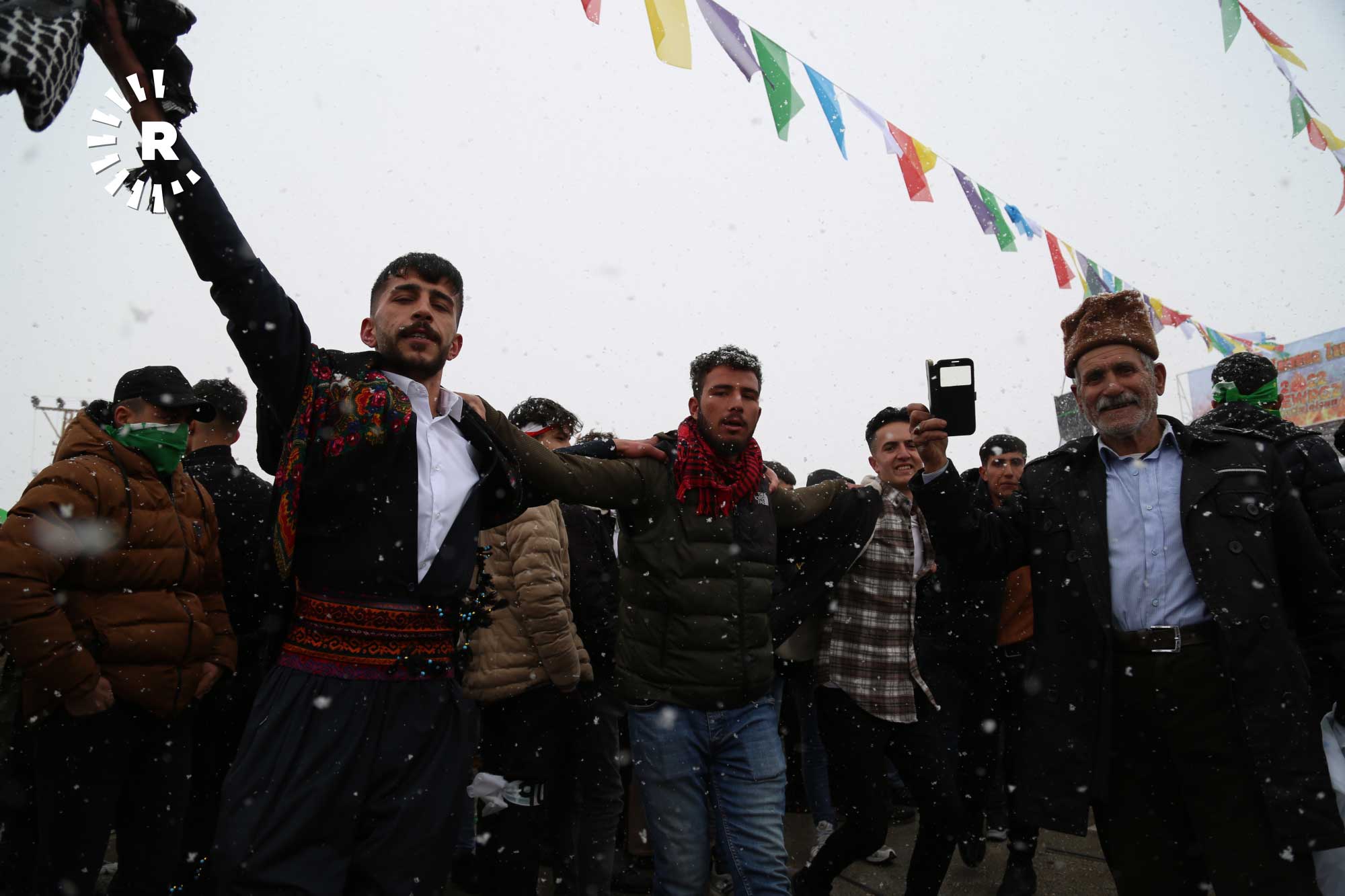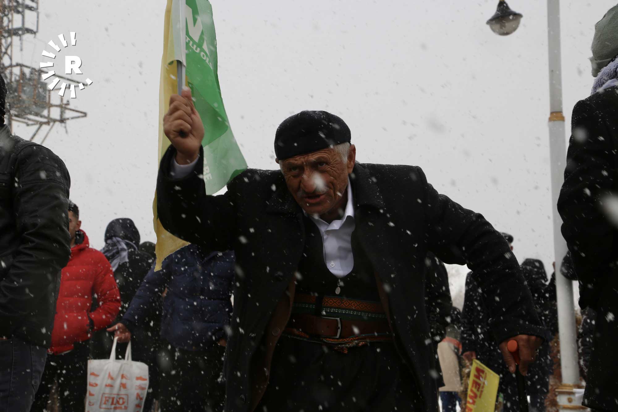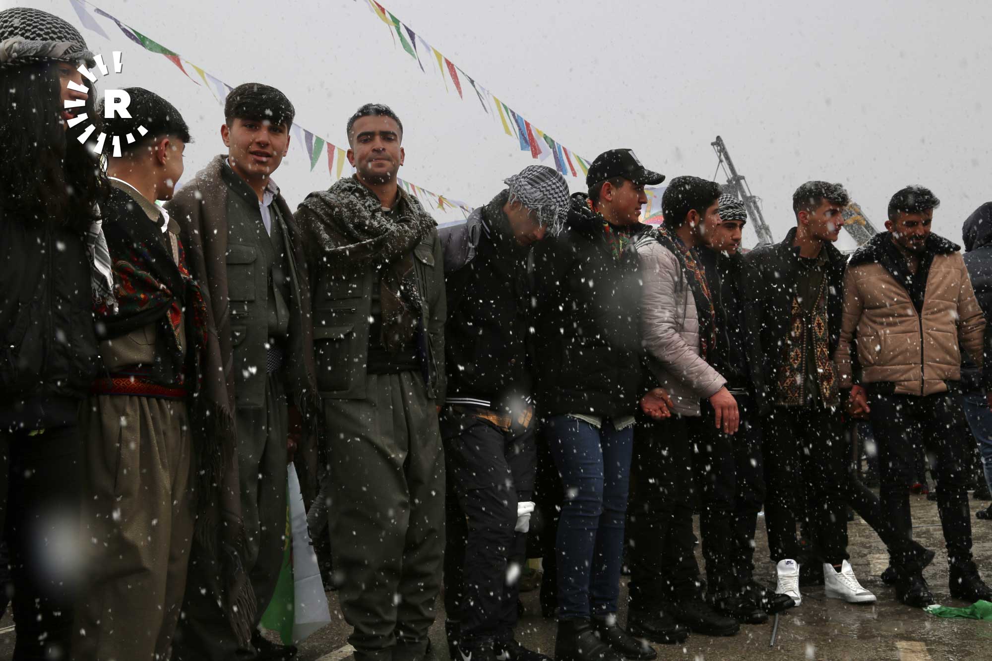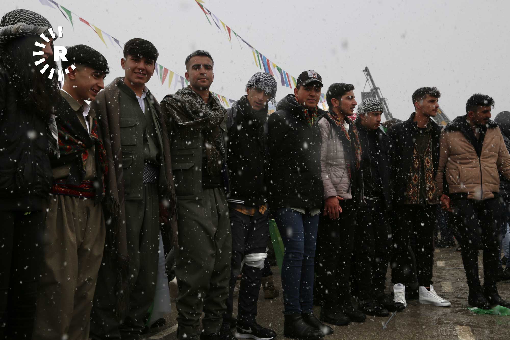 Tevî keşûhewaya xerab û barîna berfê jî hejmareke zêde ya xelkê kom bûye ku piraniya wan ciwan in û Newrozê pîroz dikin.
