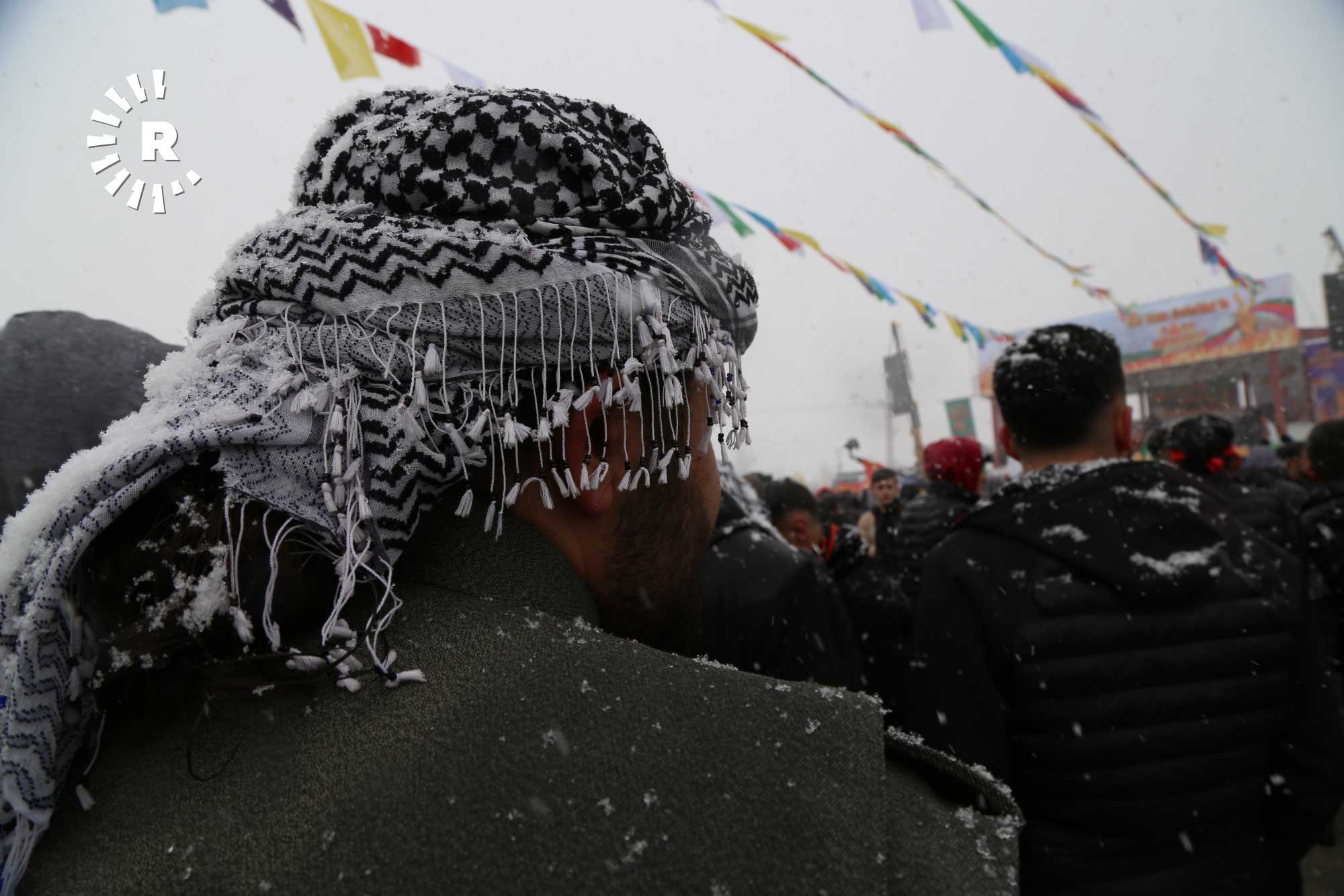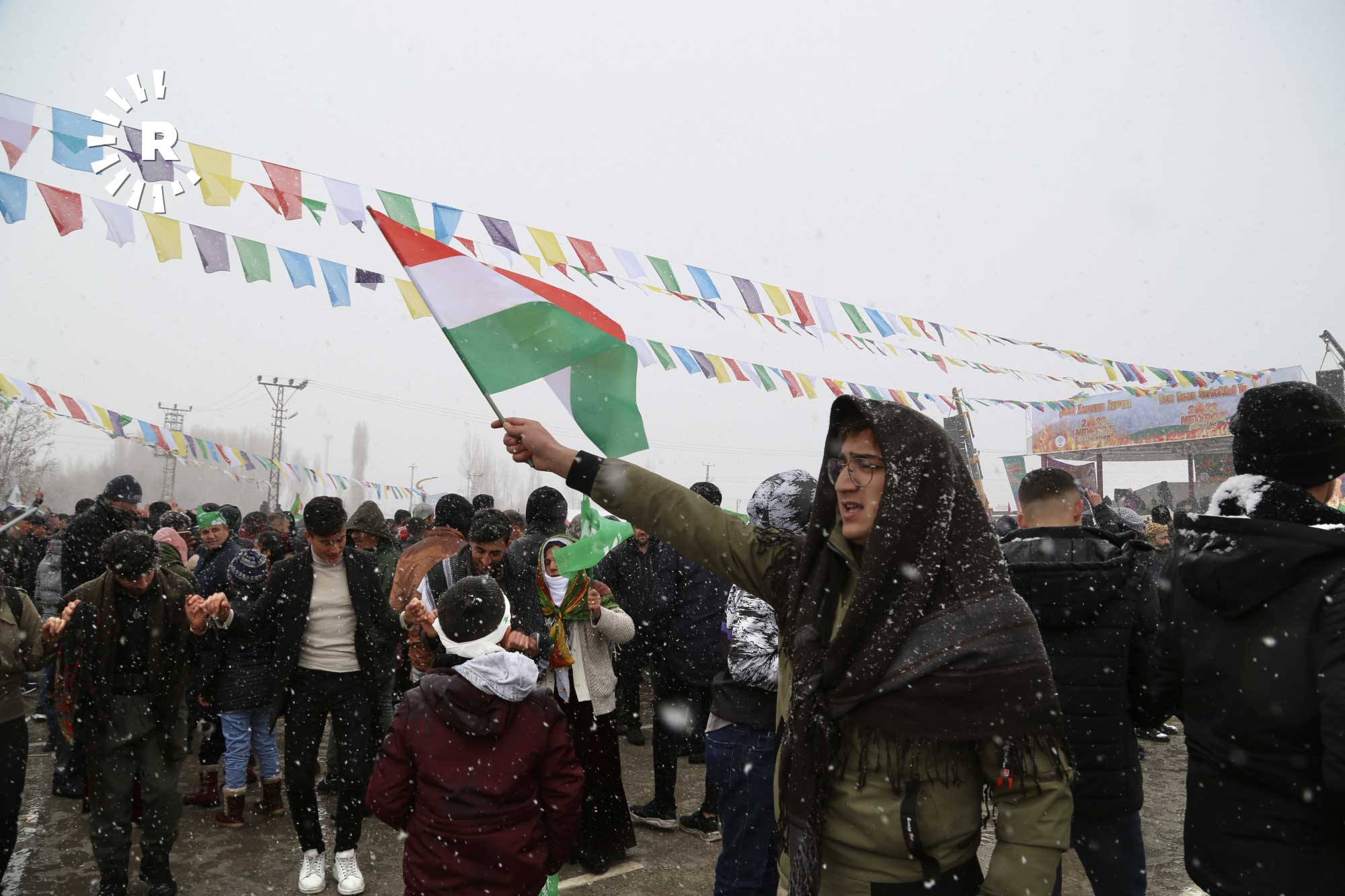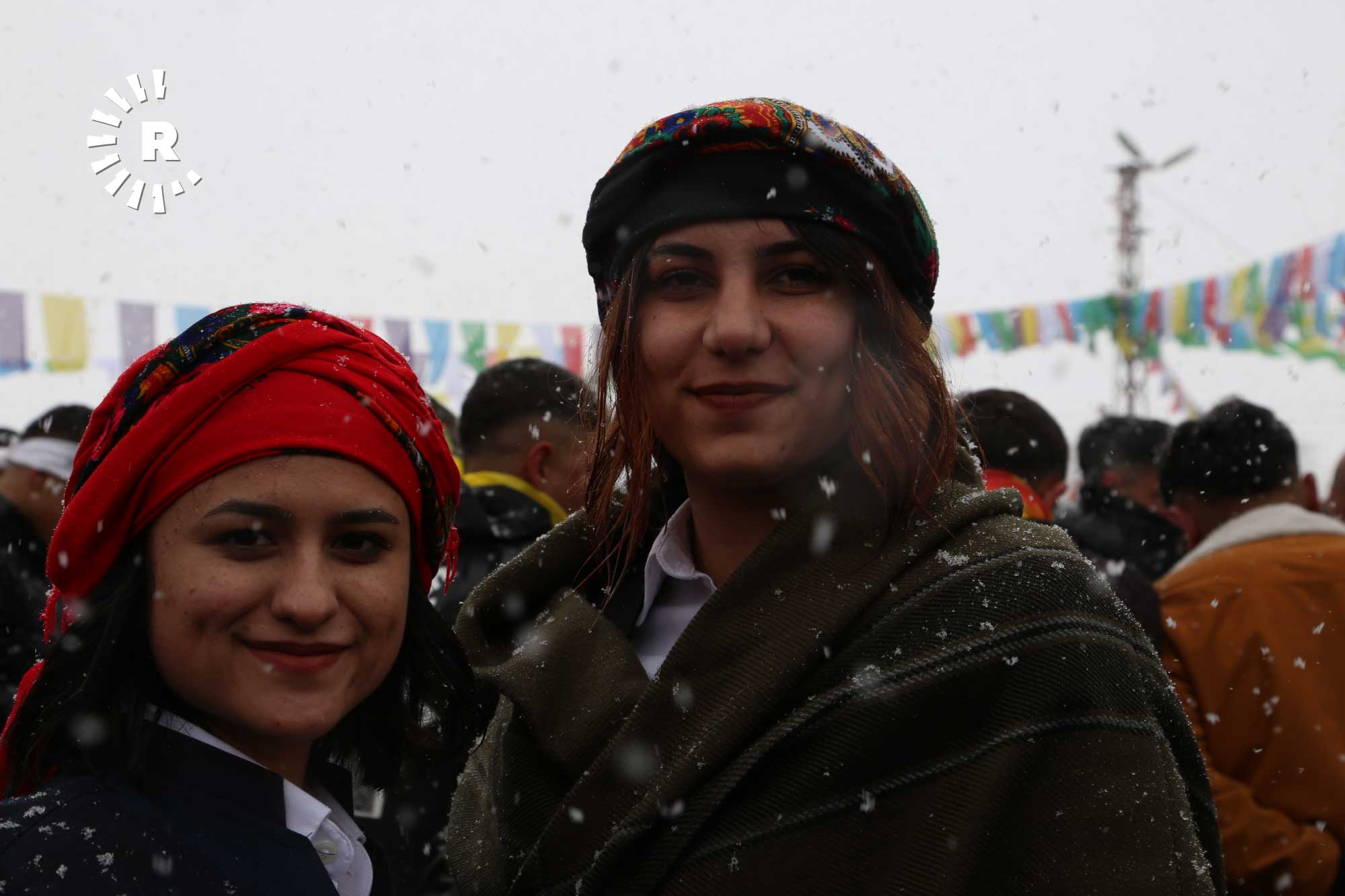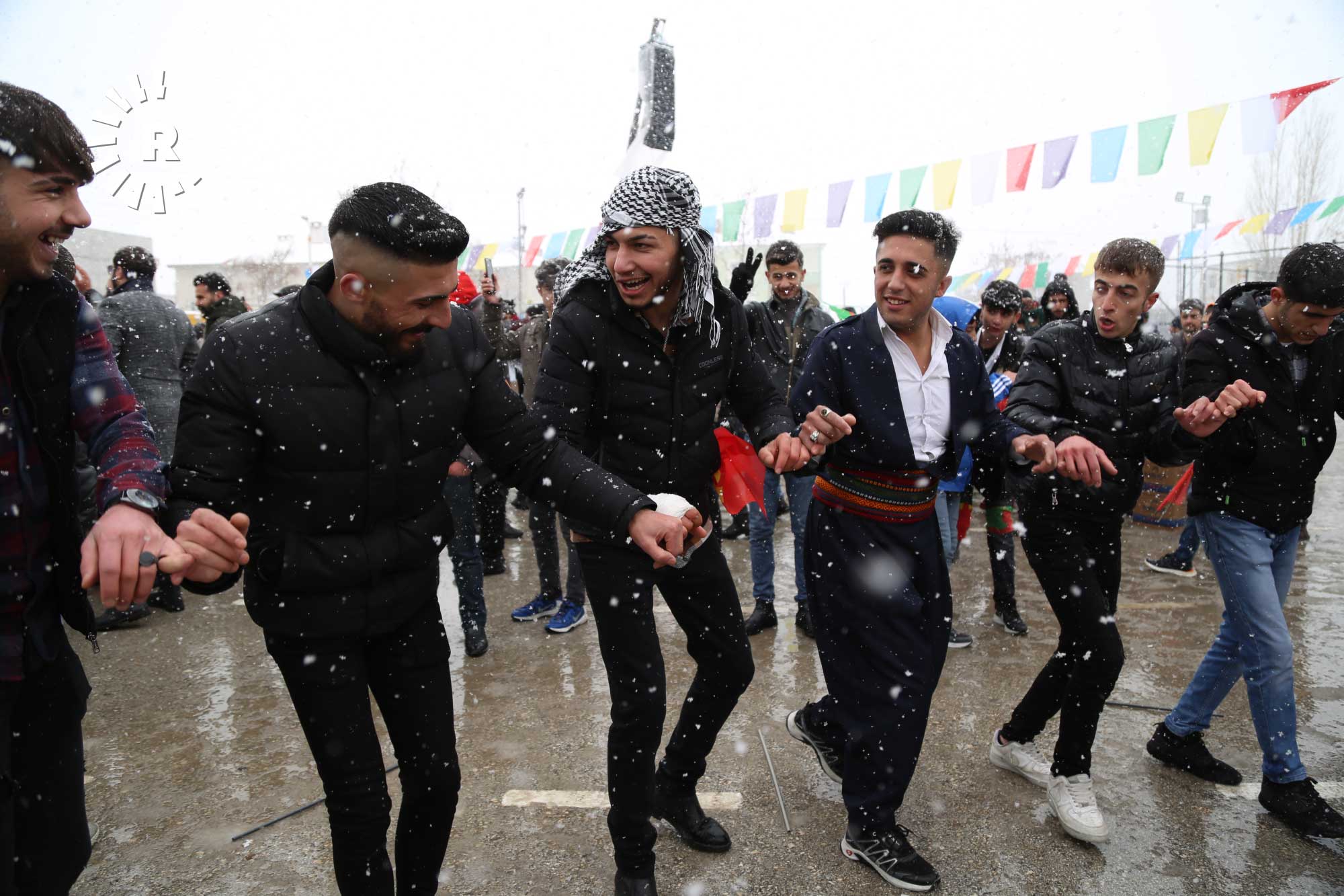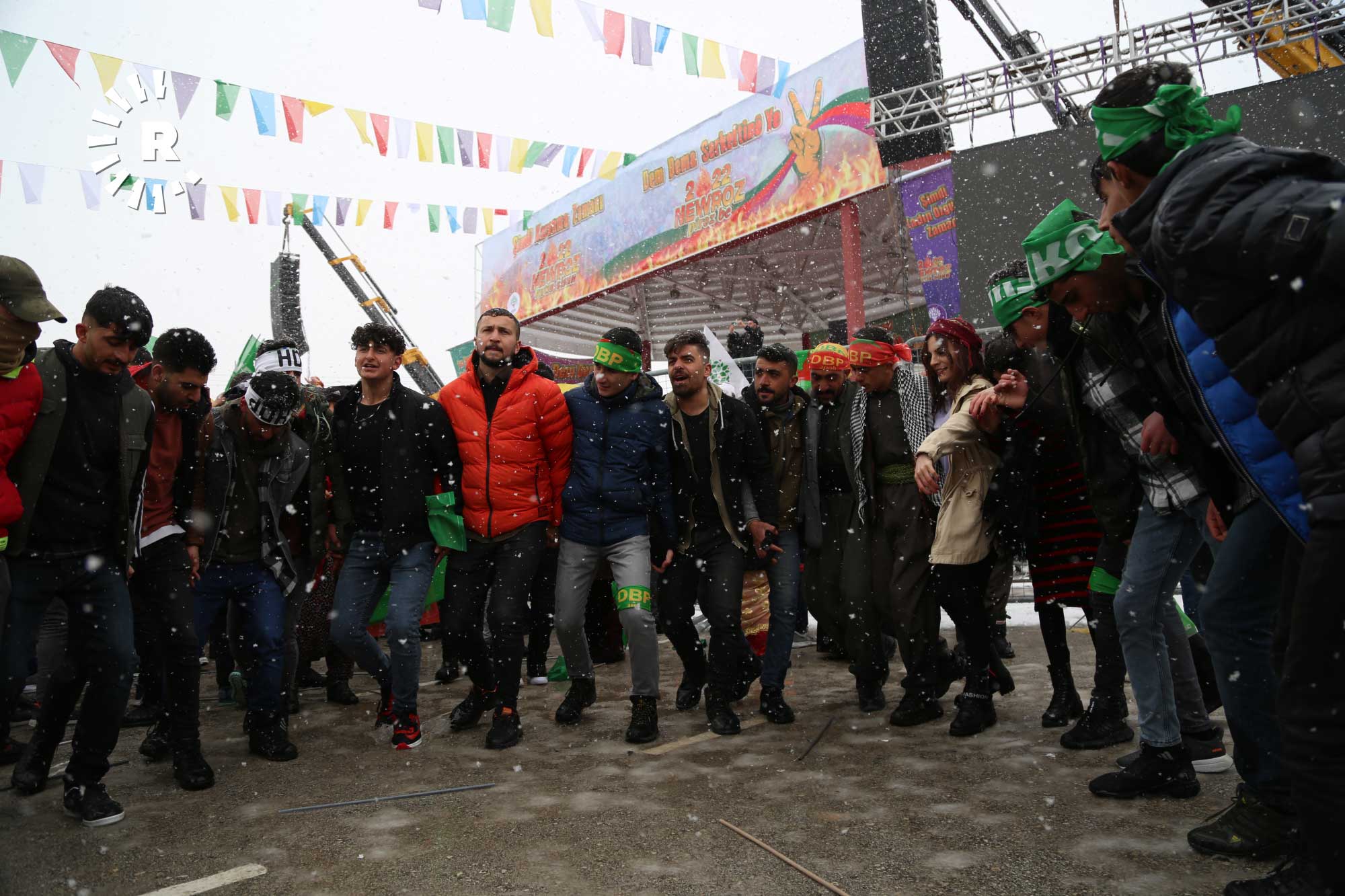 Tevî keşûhewaya xerab û barîna berfê jî hejmareke zêde ya xelkê kom bûye ku piraniya wan ciwan in û Newrozê pîroz dikin.