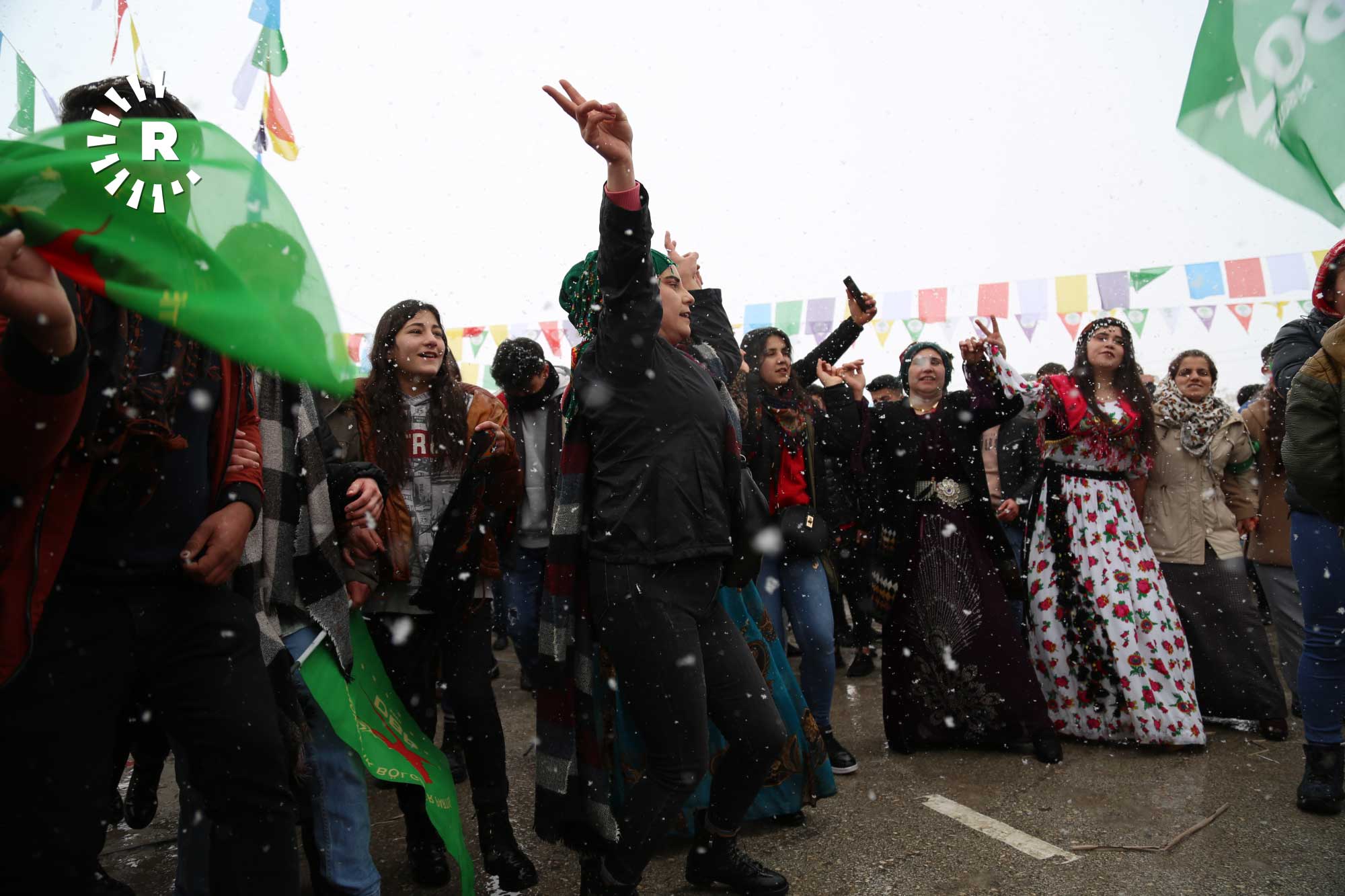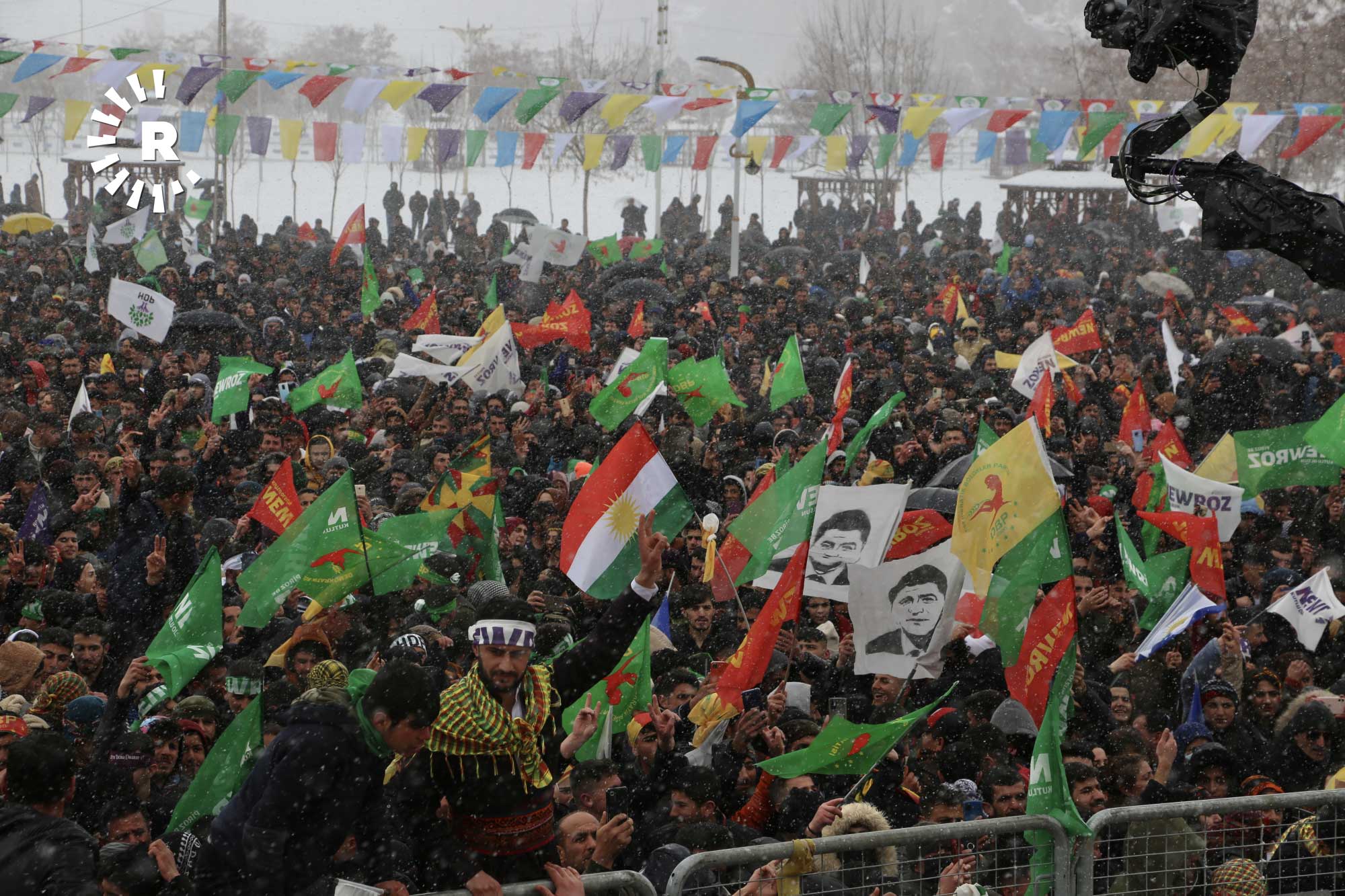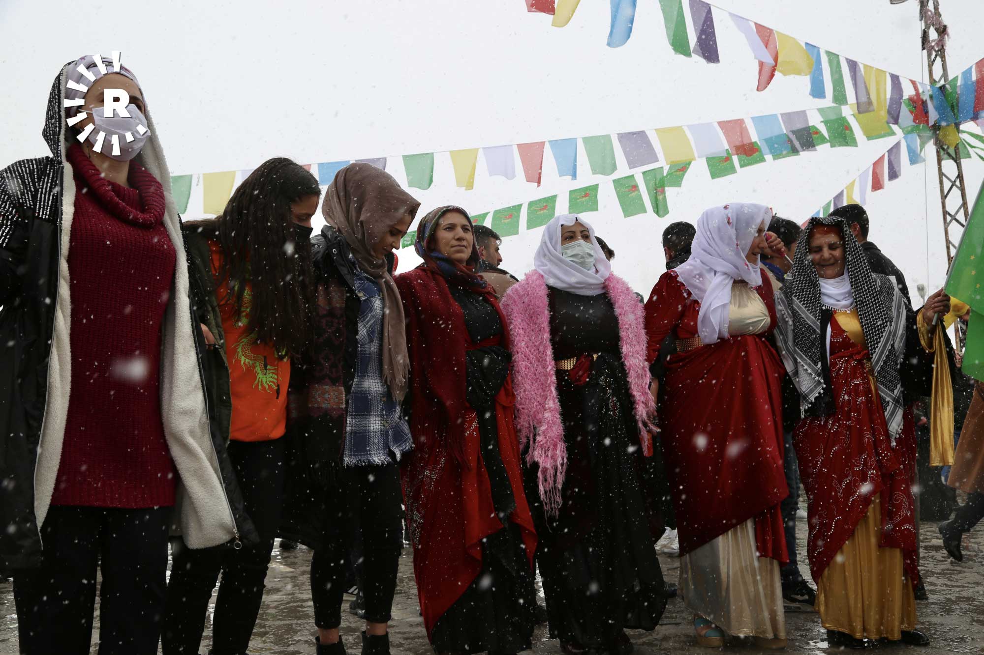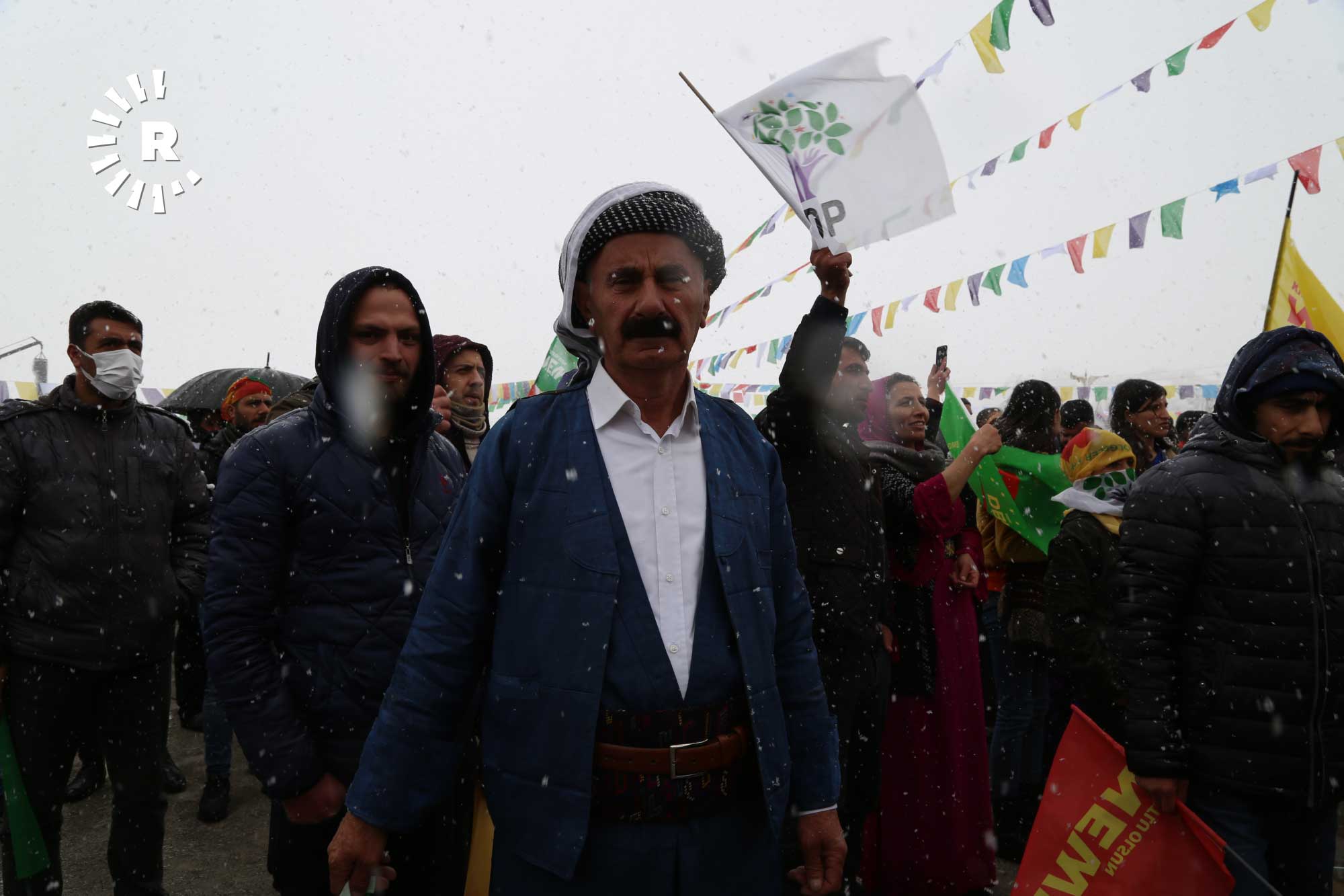 Tevî keşûhewaya xerab û barîna berfê jî hejmareke zêde ya xelkê kom bûye ku piraniya wan ciwan in û Newrozê pîroz dikin.