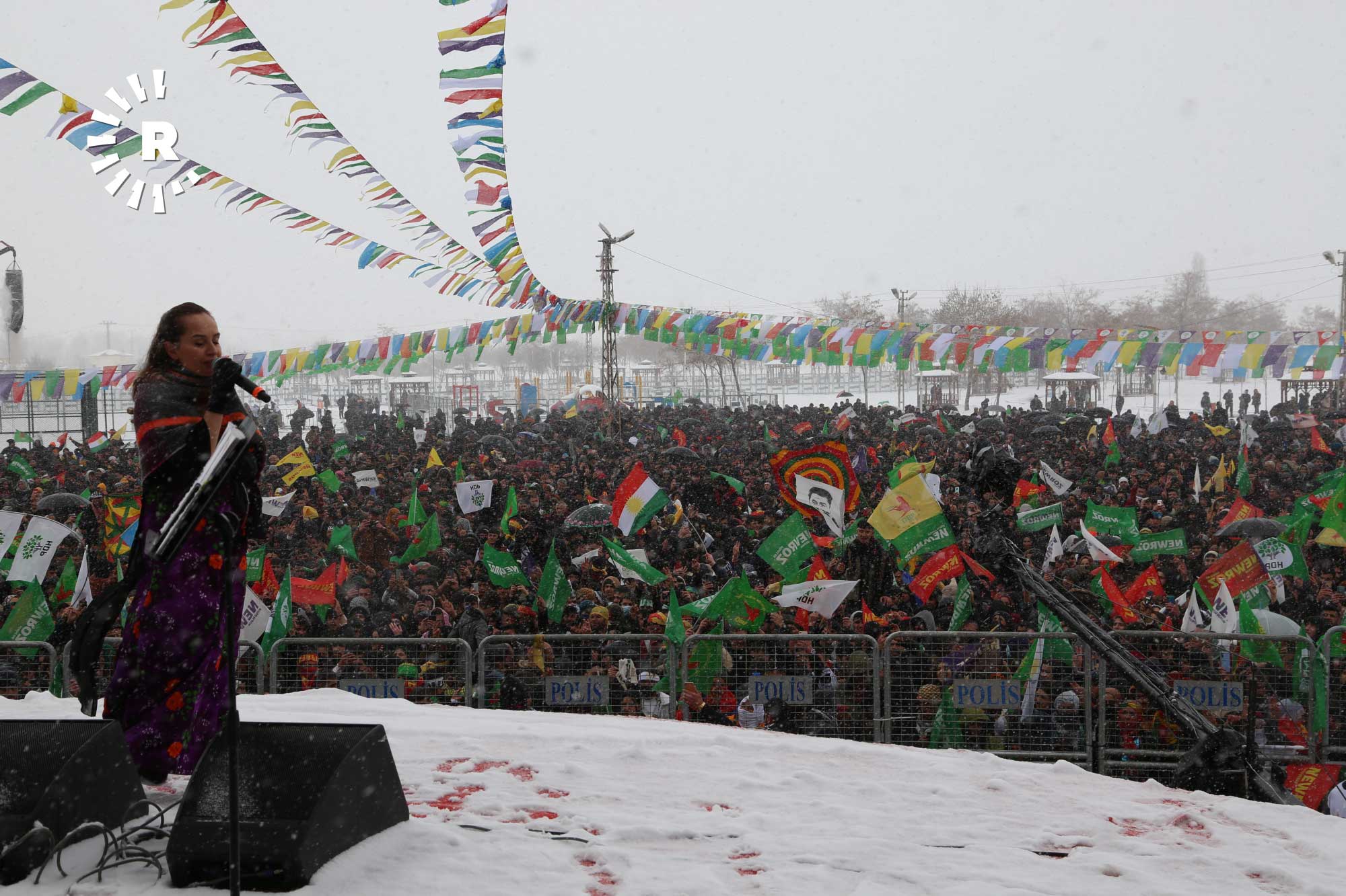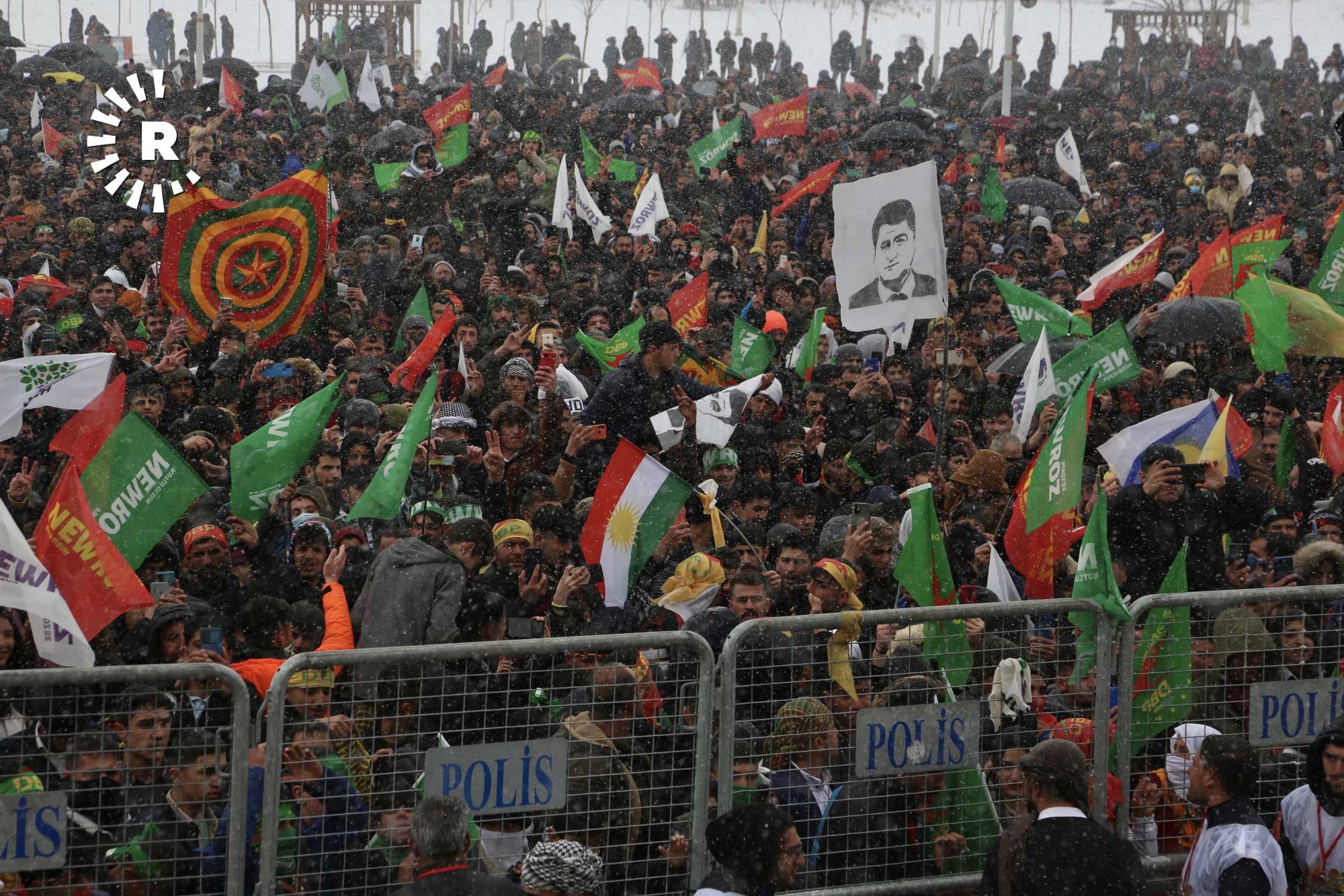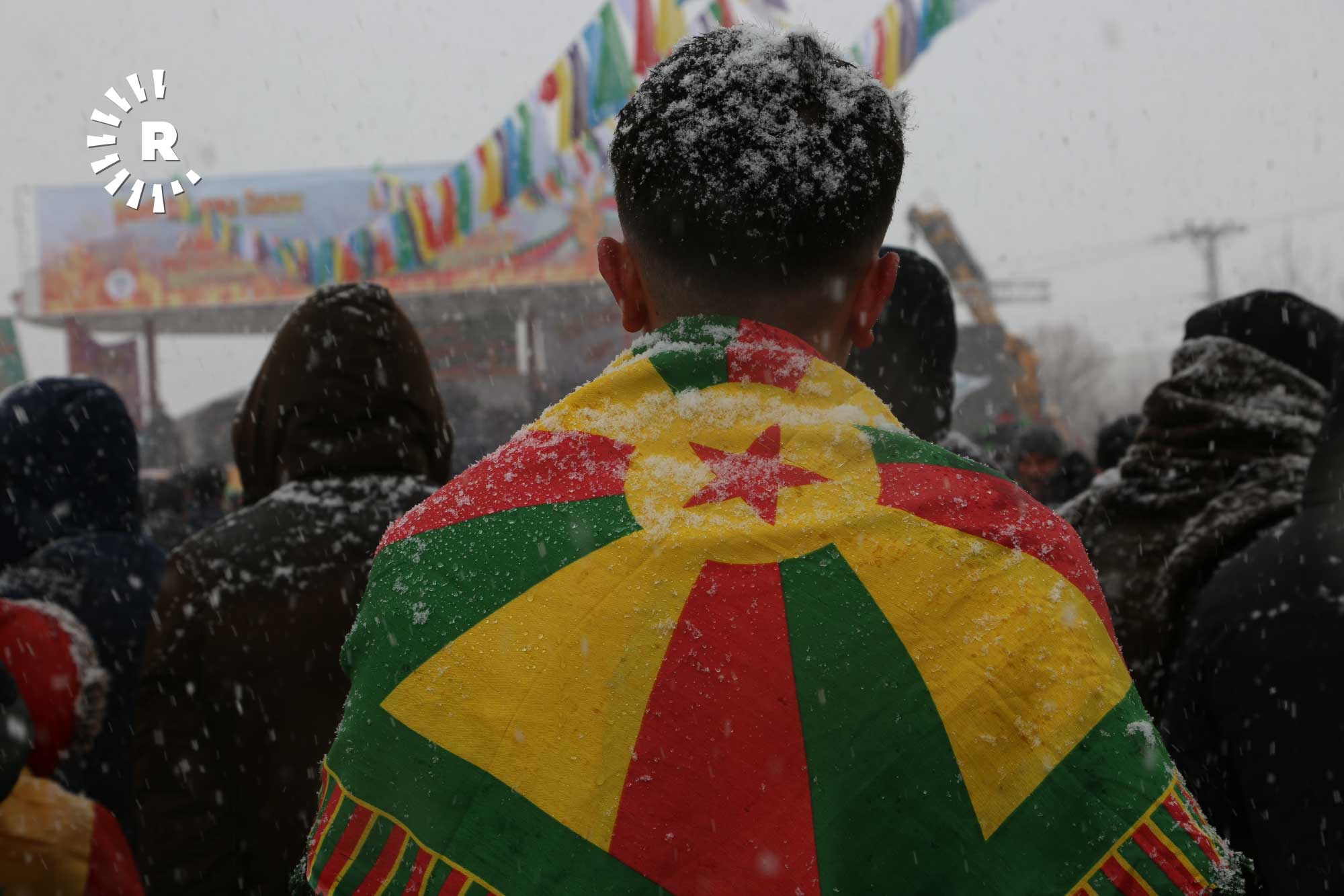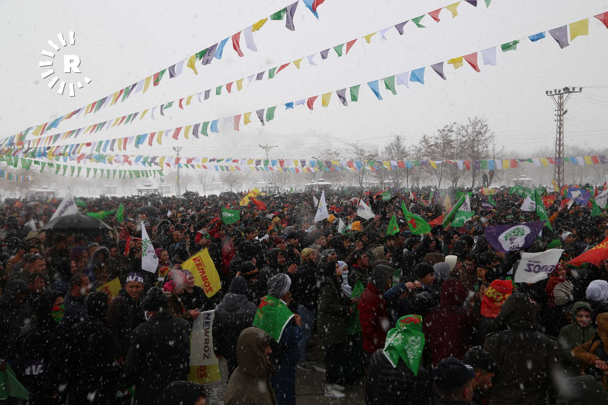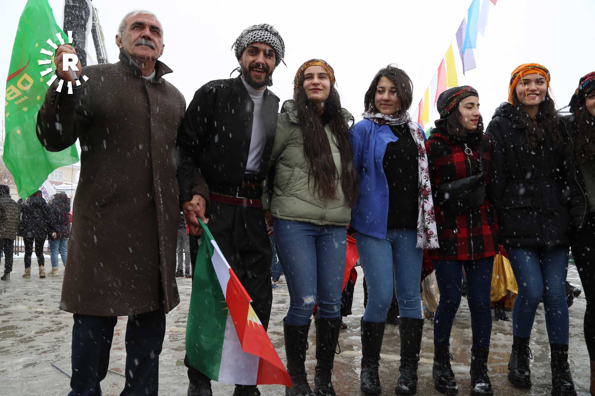 Tevî keşûhewaya xerab û barîna berfê jî hejmareke zêde ya xelkê kom bûye ku piraniya wan ciwan in û Newrozê pîroz dikin.