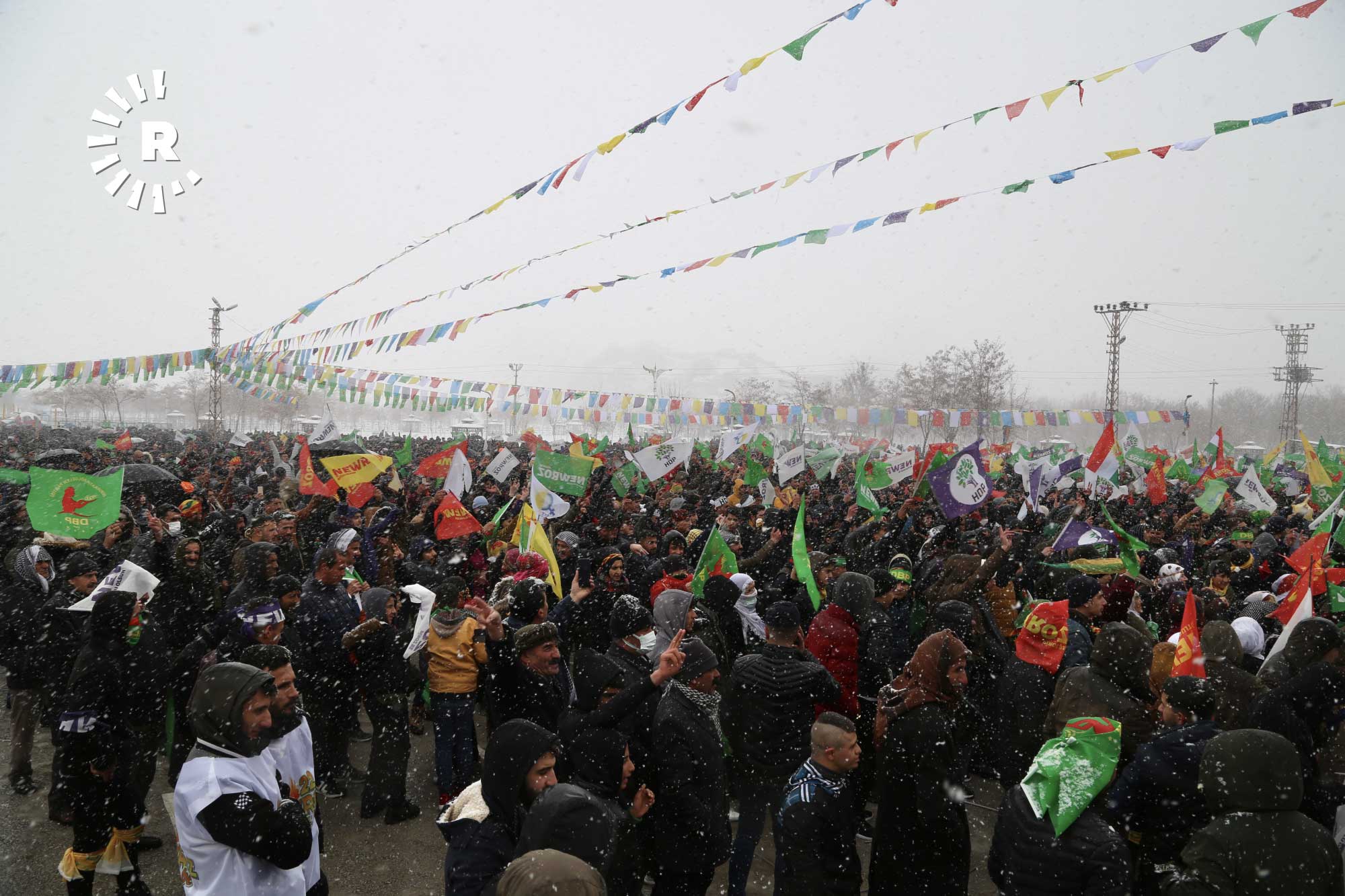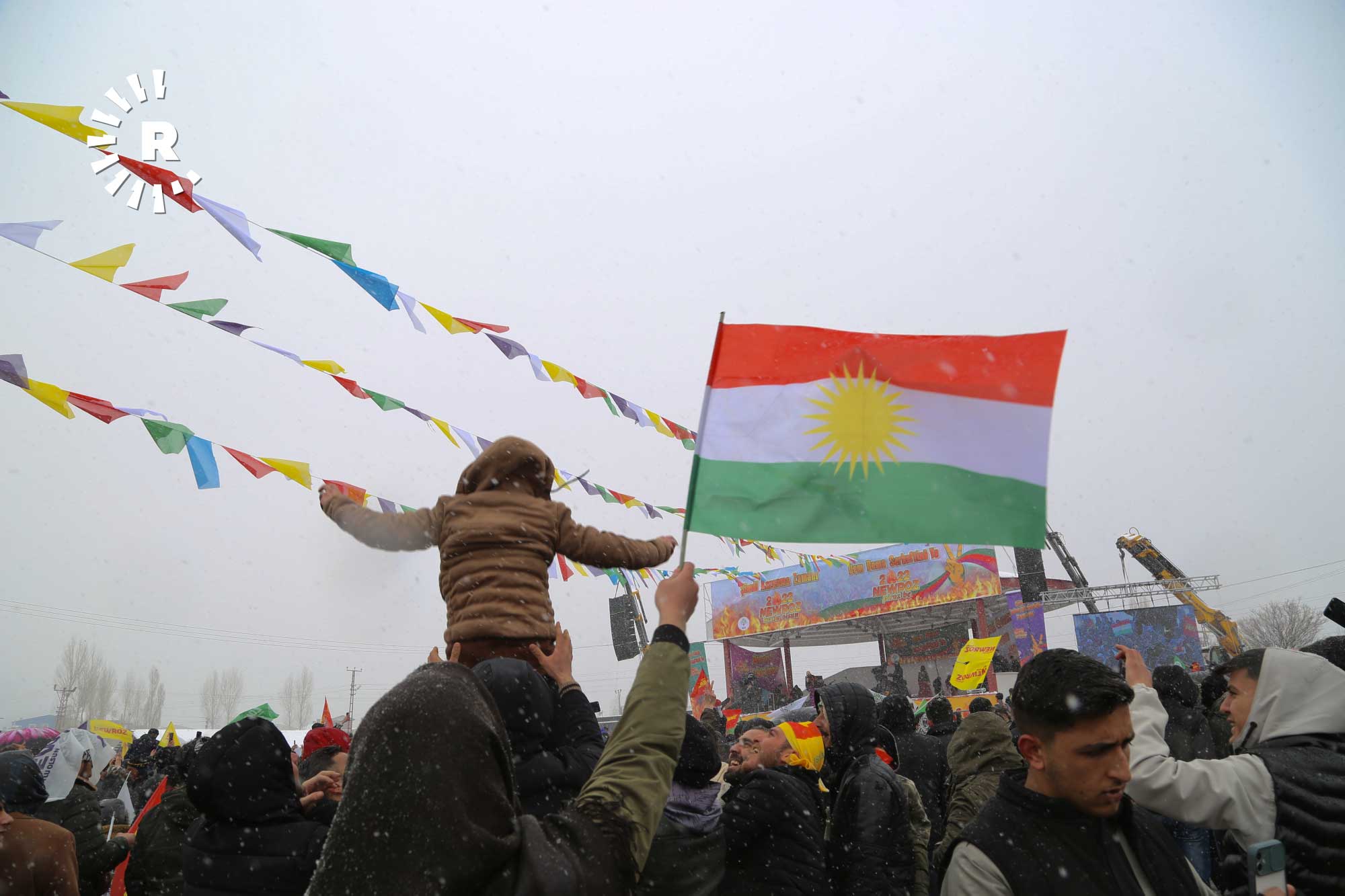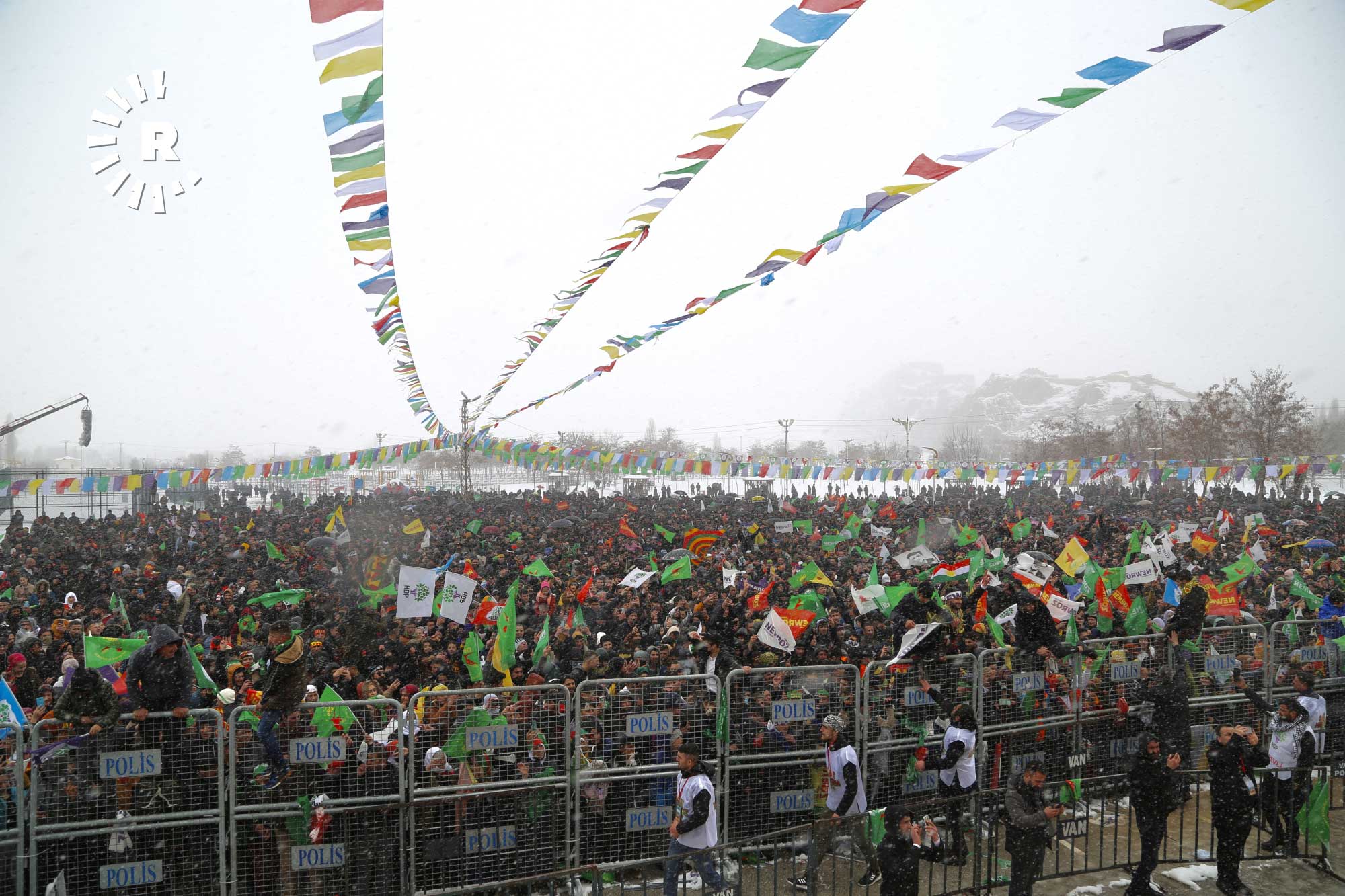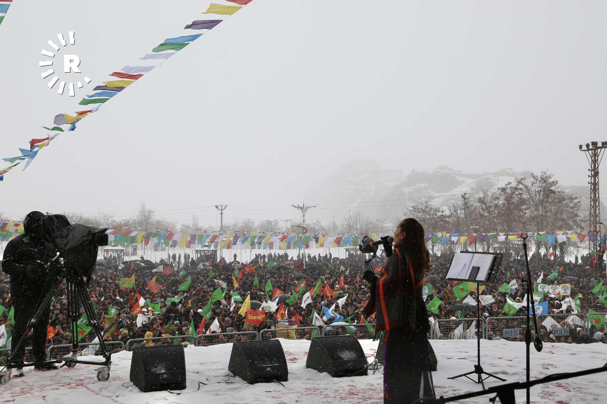 Tevî keşûhewaya xerab û barîna berfê jî hejmareke zêde ya xelkê kom bûye ku piraniya wan ciwan in û Newrozê pîroz dikin.