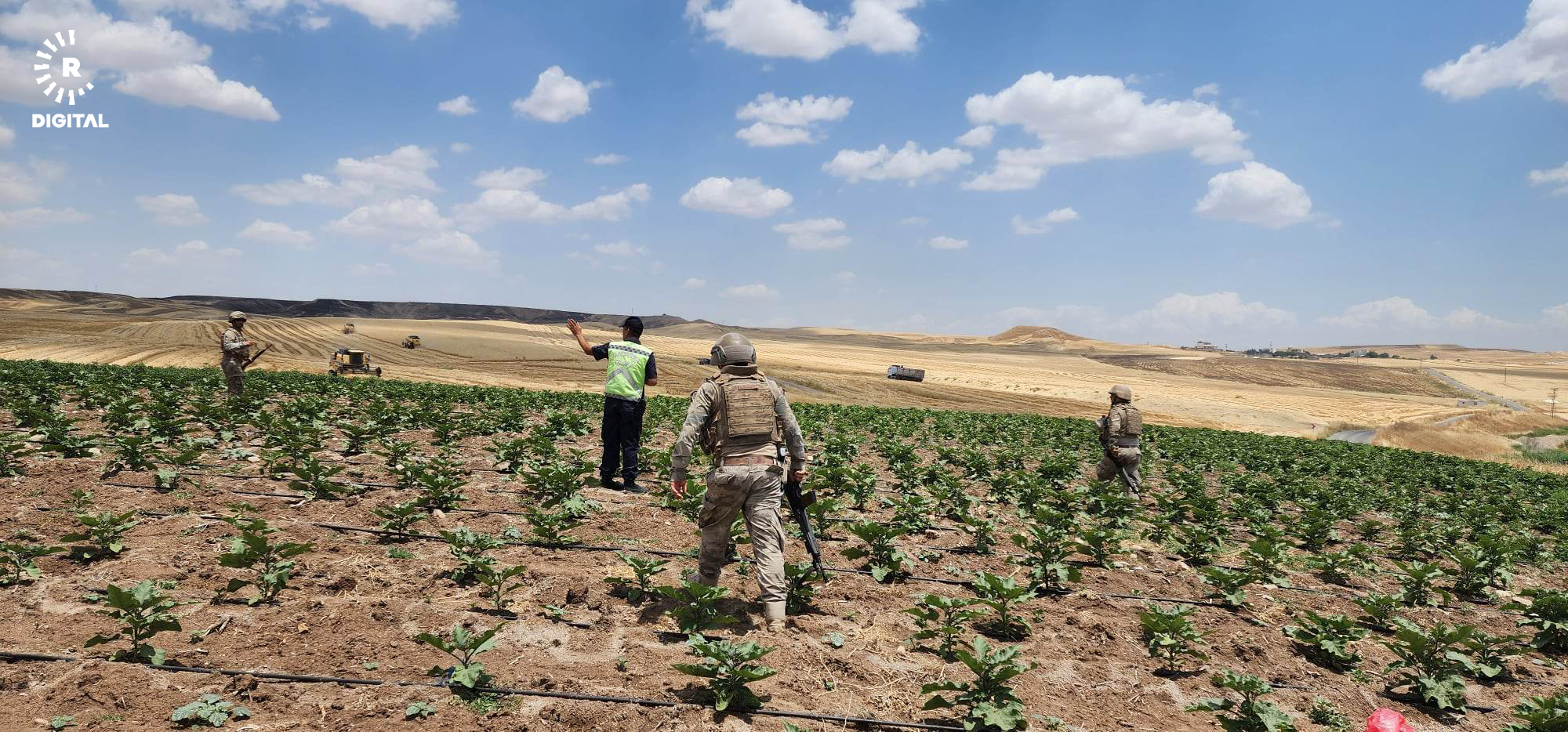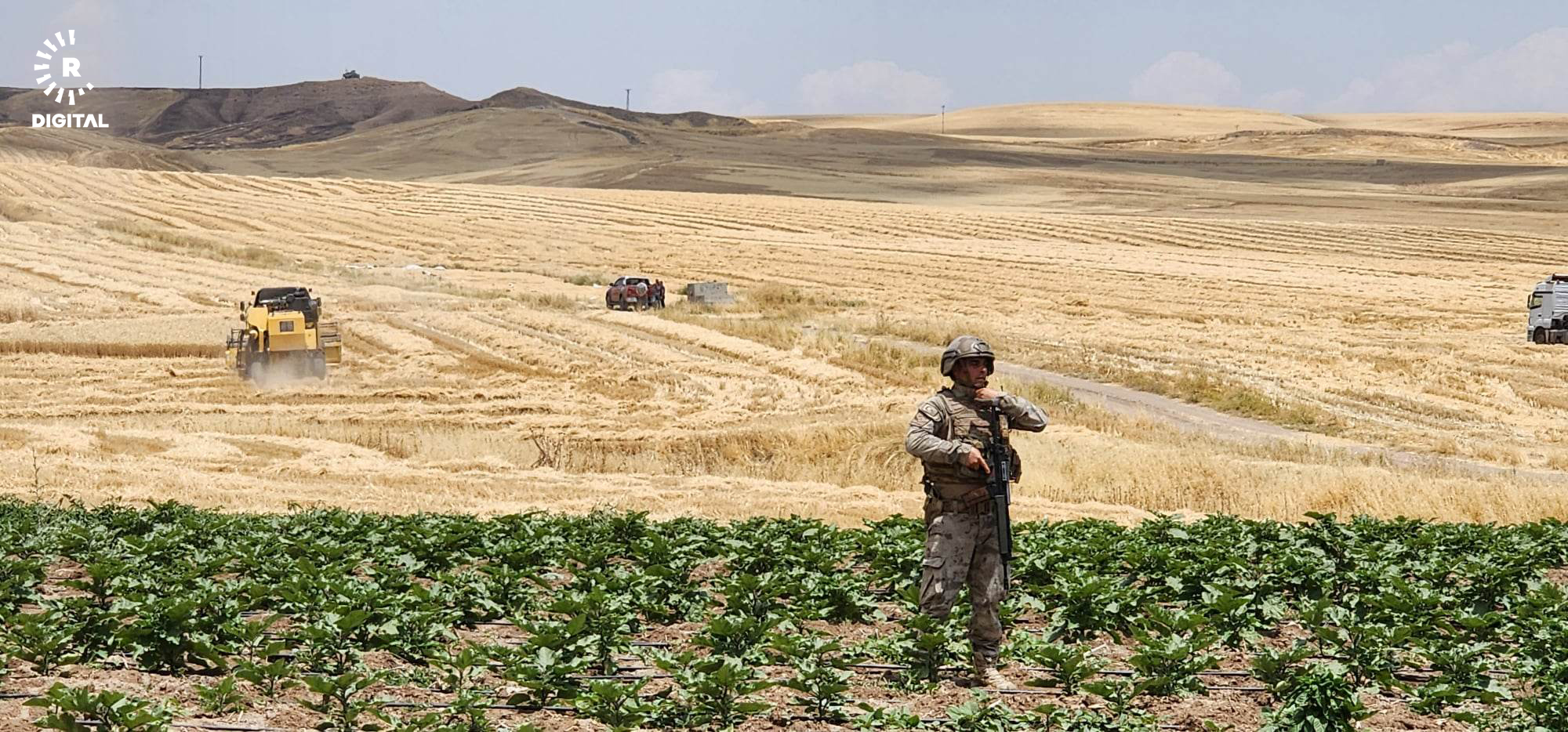 Amed (Rûdaw) - Li Bismila Amedê malbatên ku şerê hev kiribûn, di bin ewlehiya cendirmeyan de genim û cehên xwe didirûn.