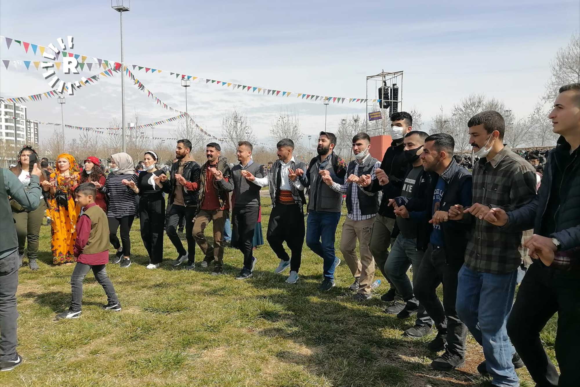 Ahenga li Parka Newrozê demjimêr 10.00 destpê kir û di bin tedbîrên Coronayê de birêve çû û xelk bi koda taybet bi encama testa Coronayê derbasî qada Newrozê bûn.