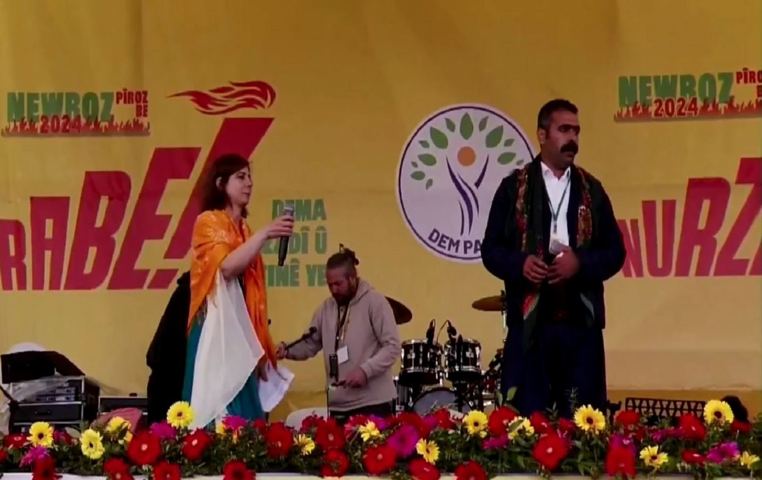 Di ahenga Newrozê de Namzedên DEM Partiyê Şaredariya Bajarê Mezin a Amedê Dogan Hatun û Serra Bucak jî bi hev re derketin ser dikê û ji girseyê re axivîn.