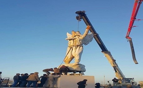 Li aliyê din ê avê, bi sedan jin û mêr û zarokan bendewariya Peykerê “Berxwedan”ê dikirin. Ev peyker ji hêla hunermendê Kurd Zîrek Mîre, wek diyariyekê bo bajarê Kobanê yê Rojavayê Kurdistanê hat çêkirin.