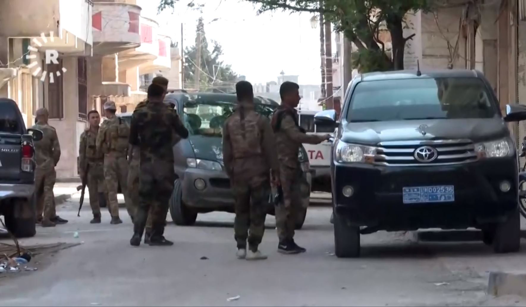 Hêzên Asayişa Rêveberiya Xweser li derdora taxa Tey a bajarê Qamişlo, Çarşemî 21ê Nîsana 2021. Wêne: Rûdaw TV.