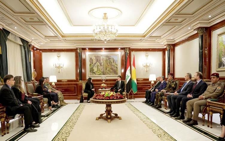 Serokê Herêma Kurdistanê Nêçîrvan Barzanî îro Çarşemê li Hewlêra paytext pêşwaziya şanda ku ji Cîgirê Wezîrê Berevaniyê yê Amerîkayê ji bo Karûbarên Rojhilata Navîn Dana Stroul, Fermandarê Giştî yê Hêzên Hevpeymanan li Iraq û Sûriyê General Matthew McFarlane û dîplomatên Balyozxaneya Amerîkayê yê Iraqê pêk hatibû kir.