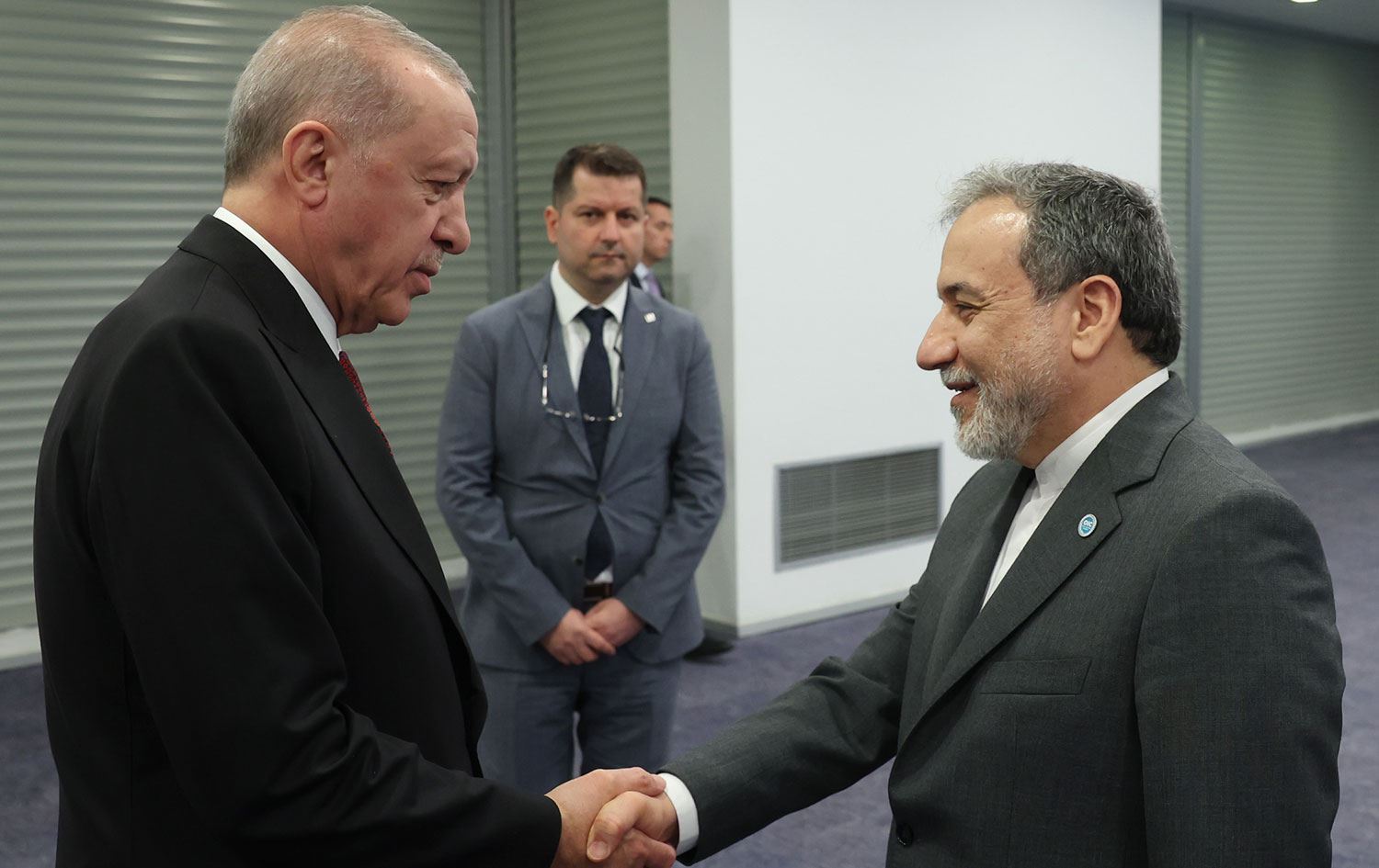 Serokkomarê Tirkiyeyê Recep Tayyîp Erdogan û Wezîrê Karên Derve yê Îranê Ebas Eraqçî di çarçoveya civînê de civiyan.