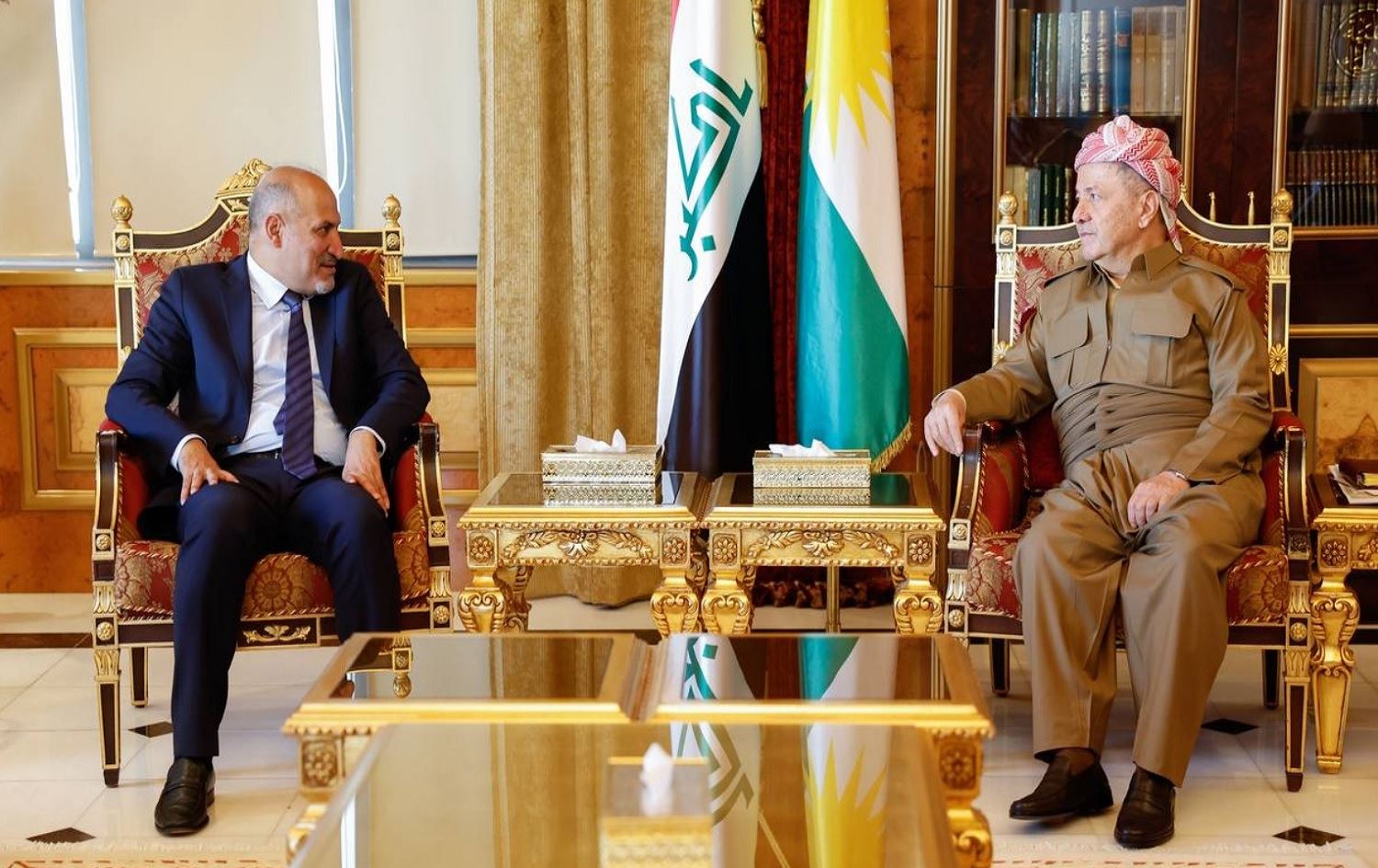 Baregeha Serok Barzanî ragihand Serok Mesûd Barzanî îro li Hewlêrê Serokê Şepalê El-Xedê ya Sûriyeyê Ehmed El Cerba qebûl kir.