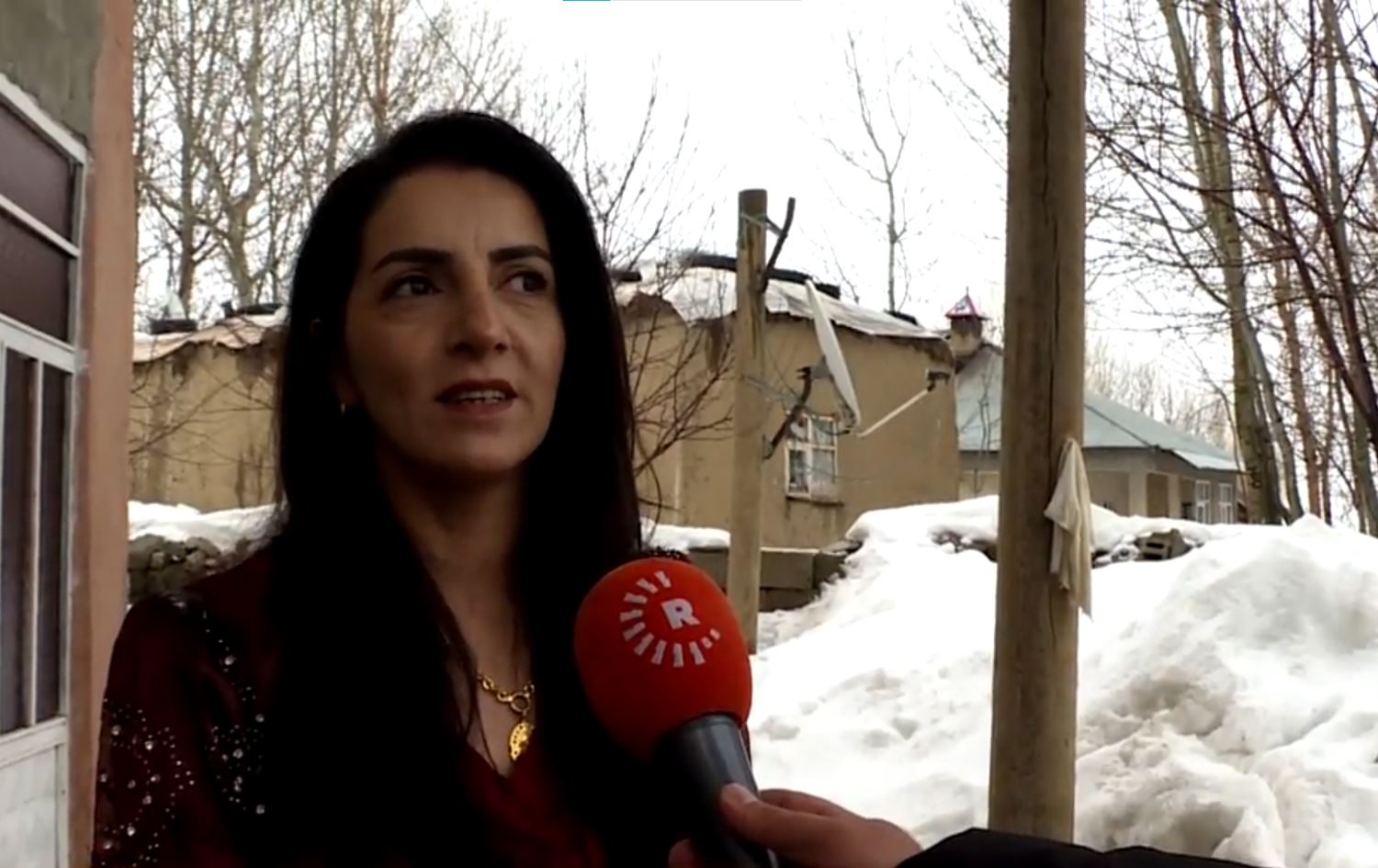 Aycan Canan tevî berf û baranê bi cil û bergên xwe yên Kurdî mal bi mal digere û daxwaza dengên gundiyan dike.