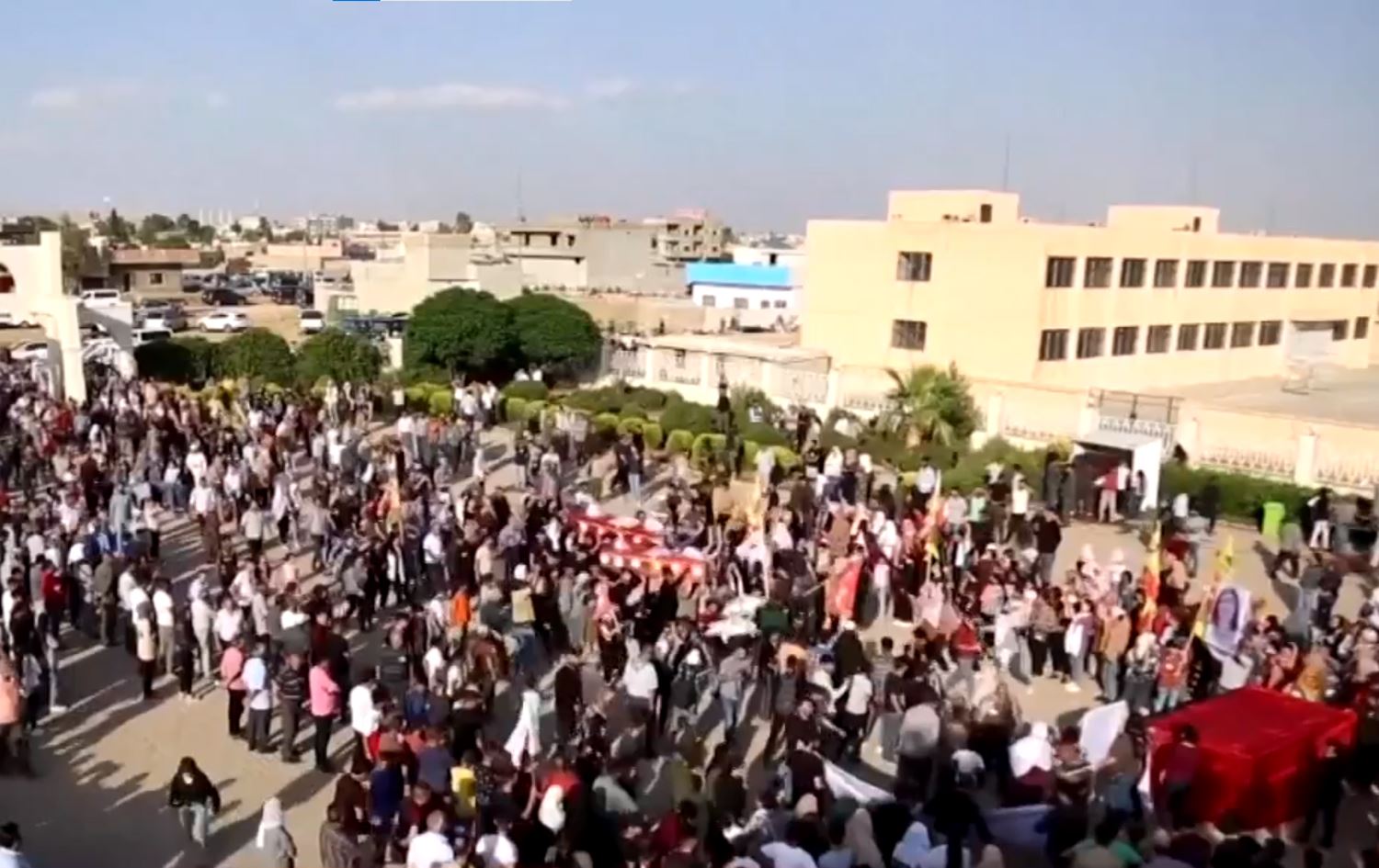 Li bajarê Amûdê yê Rojavayê Kurdistanê cenazeyên du berpirsên Cizîr a Rojavayê Kurdistanê ya ser bi Rêveberiya Xweser ve Yusra Derwêş û Leyman Şiwêş li gel şofêrê wan ku ji aliyê droneke Tirkiyê ve roja 20ê Hezîranê hatibûn armanckirin bi axê tên sipartin.