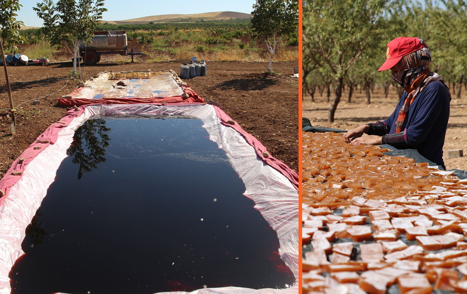 Cotkar tiriyê ku ji nav rez kom dikin, di kîsan de diperçiqînin û ava wê digirin. Wê avê dikelînin, dikin dims û piştre dikin hewdel.