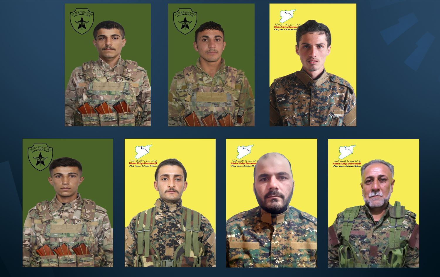 Hewlêr (Rûdaw) - Hêzên Sûriyeya Demokratîk (HSD) nasnameyên 7 şervanan eşkere kirin ku di êrişên komên çekdar de canê xwe ji dest daye.