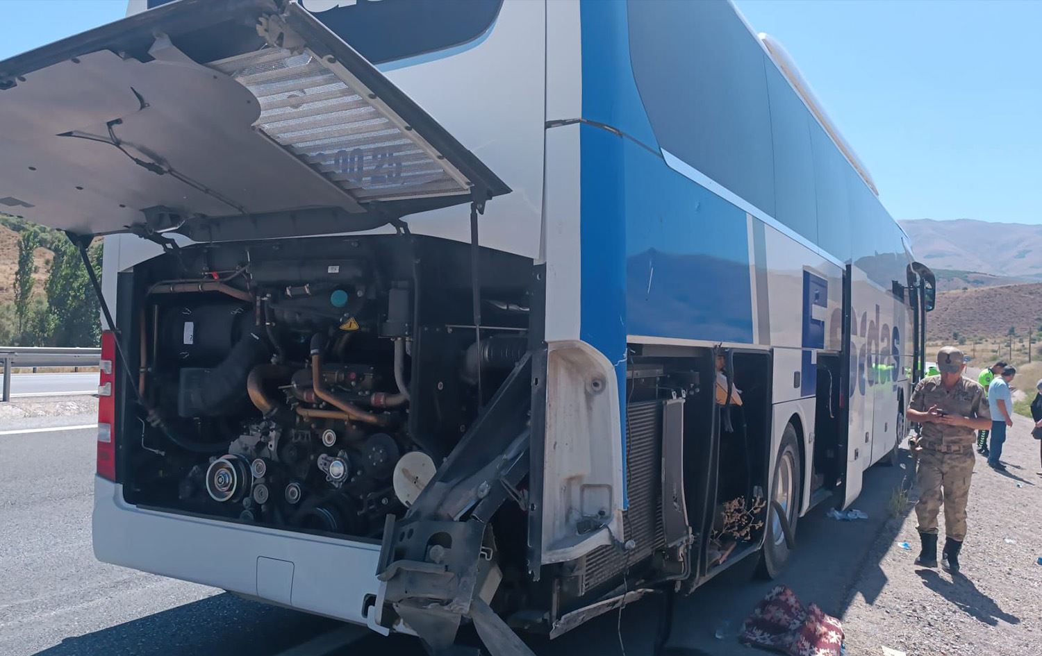 Di qezayê de şofêrê duyem Cemalettîn Tosunoglu yê 61 salî ku di beşa razanê ya otobusê de bû, tevî rêwiyên bi navên A.Ç. (24), E.K. (28), Y.K. (4) û N.Y. (53) birîndar bûn.