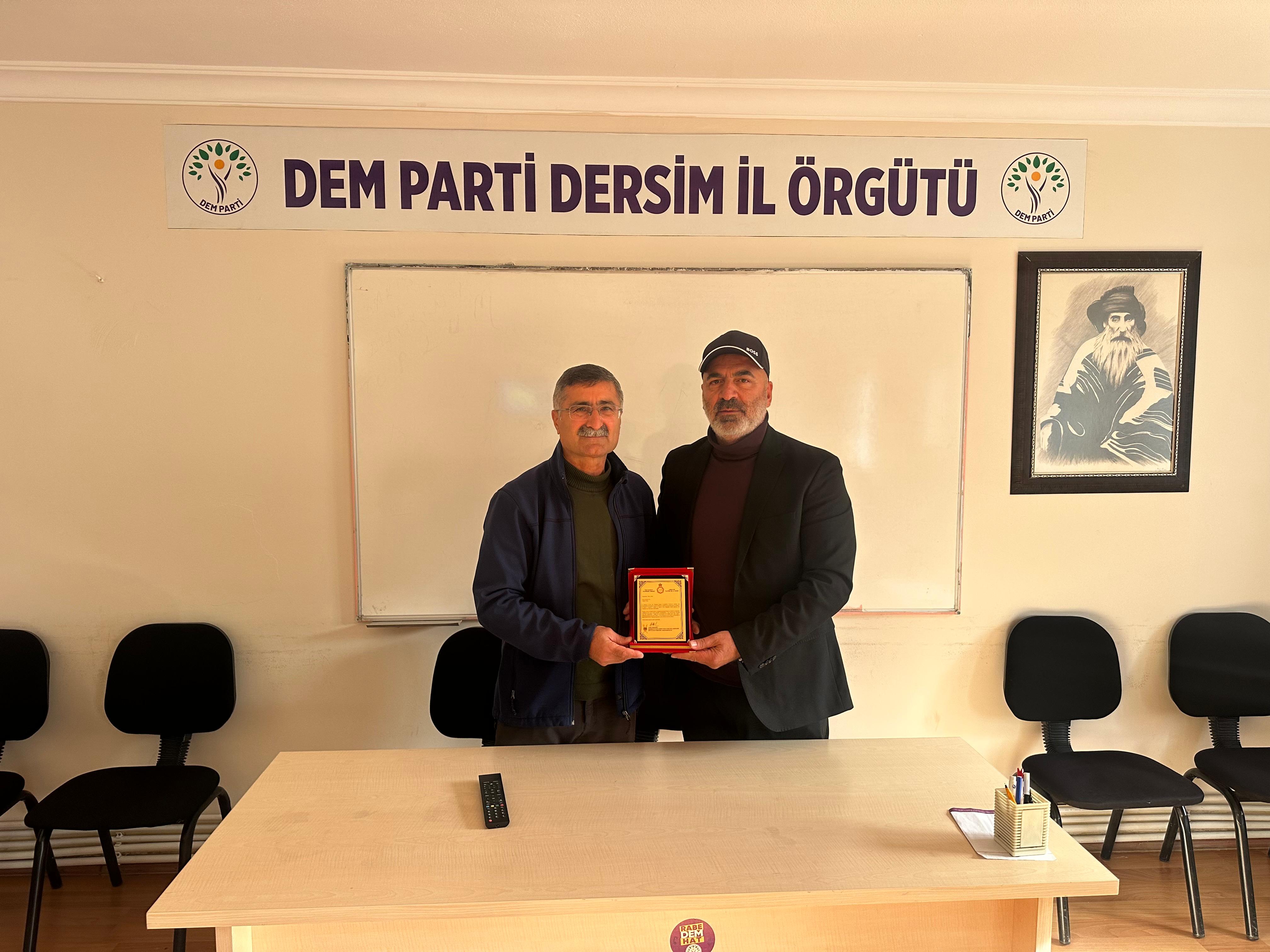 Îro jî min li Dêrsimê serdana serokên rêxistinên parêzgehê yên MHP, AK Partî û DEM Partiyê kir ku beşdarî pêvajoya çareseriyê dibin û min plaket dan wan.