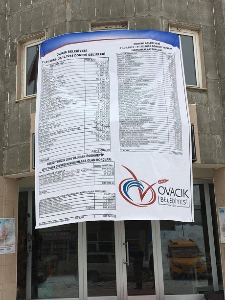 Dêrsim (Rûdaw) – Li Dêrsimê, Şaredariya Navçeya Pulurê weke her sal, îsal jî lîsteya dahat û lêçûnên şaredariyê daliqande ser avahiyê.