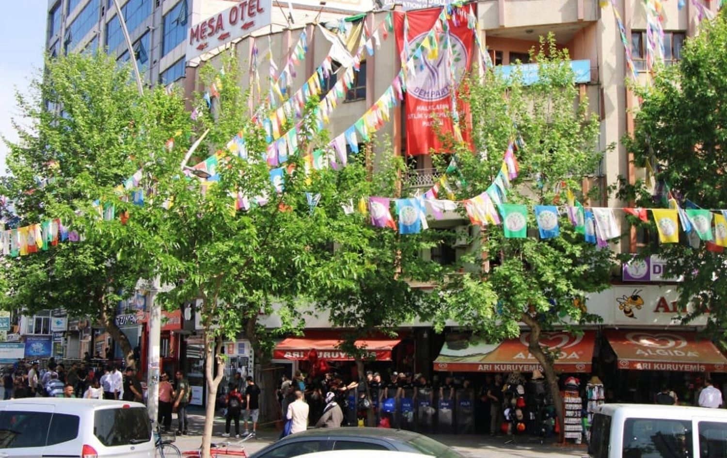 Polîsan avahiya partiyê dorpêç kiriye û niha di nav avahiyê de lêgerînê dikin.