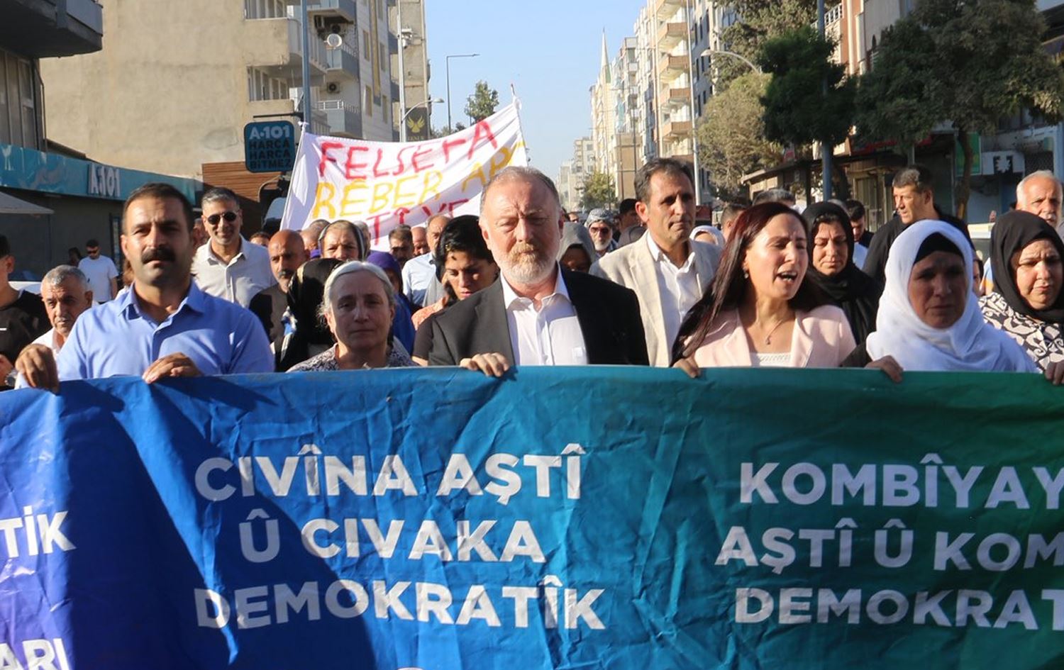 Partiya Gelan a Wekhevî û Demokrasiyê (DEM Partî), Partiya Herêmên Demokratîk (DBP) û Tevgera Jinên Azad (TJA) di çarçoveya "Pêvajoya Aştî û Civaka Demokratîk" de li navçeya Sirûcê ya Rihayê meş li dar xist.