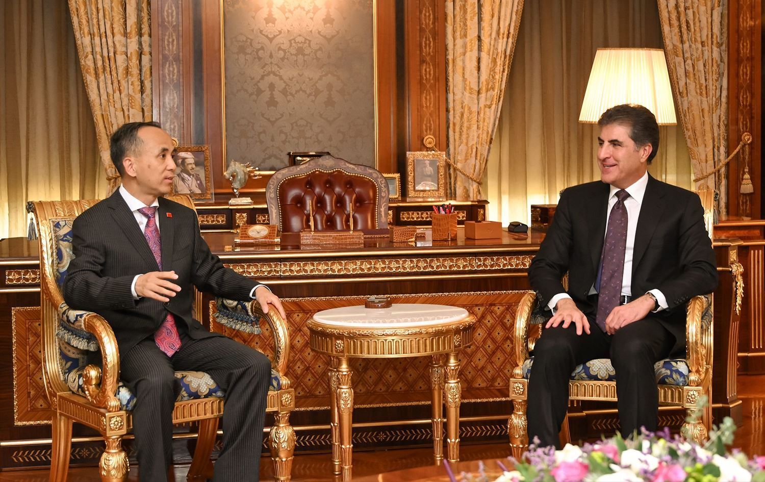 Hewlêr (Rûdaw) Serokê Herêma Kurdistanê Nêçîrvan Barzanî û Konsulê Çînê yê Hewlêrê Liu Jiong civiyan.