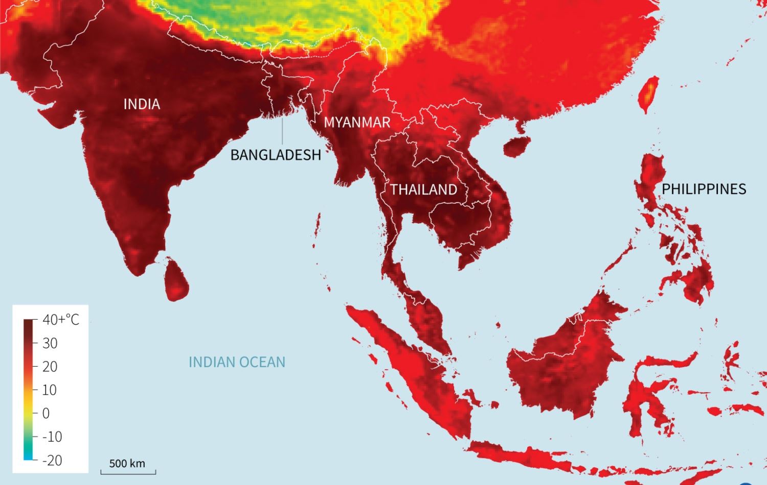Li Myanmarê ku cîranê Taylandê ye pileya germahiyê bûye 45,9 û tê çaverêkirin ku pileya germahiyê zêdetir bibe.