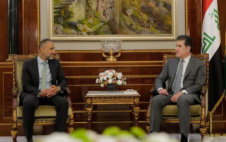 Serokê Herêma Kurdistanê Nêçîrvan Barzanî û Balyozê Brîtanyayê yê Îraqê Irfan Siddiq civiyan.