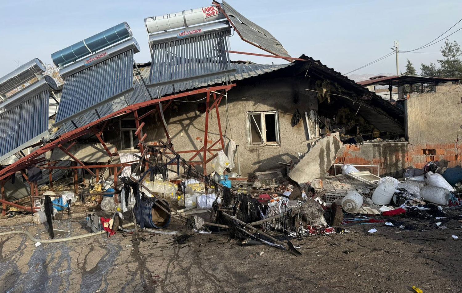 Bi bandora teqîna bihêz dîwarên tesîsê hilweşiyan û zerereke mezin li avahiyê ket.