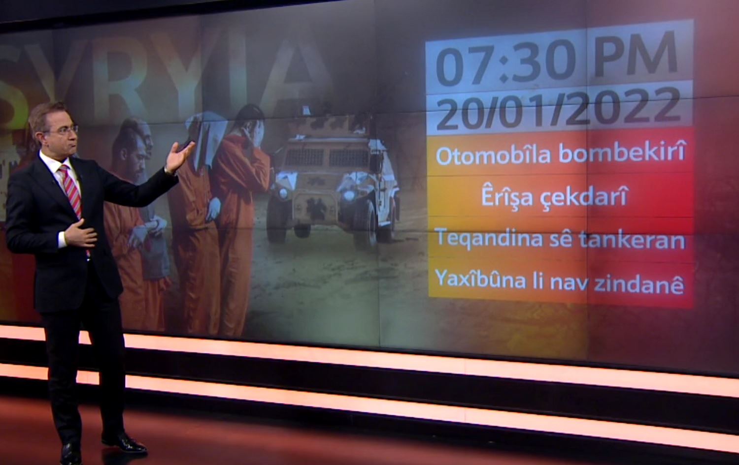 Roja Pênşemê, 20/01/2022, bi şev derdora demjimêr 19.30, DAIŞê otomobîlek û motorekî bombekirî, li nêzîkî deriyê zindana Sînaa ya li taxa Xiwêran teqand.