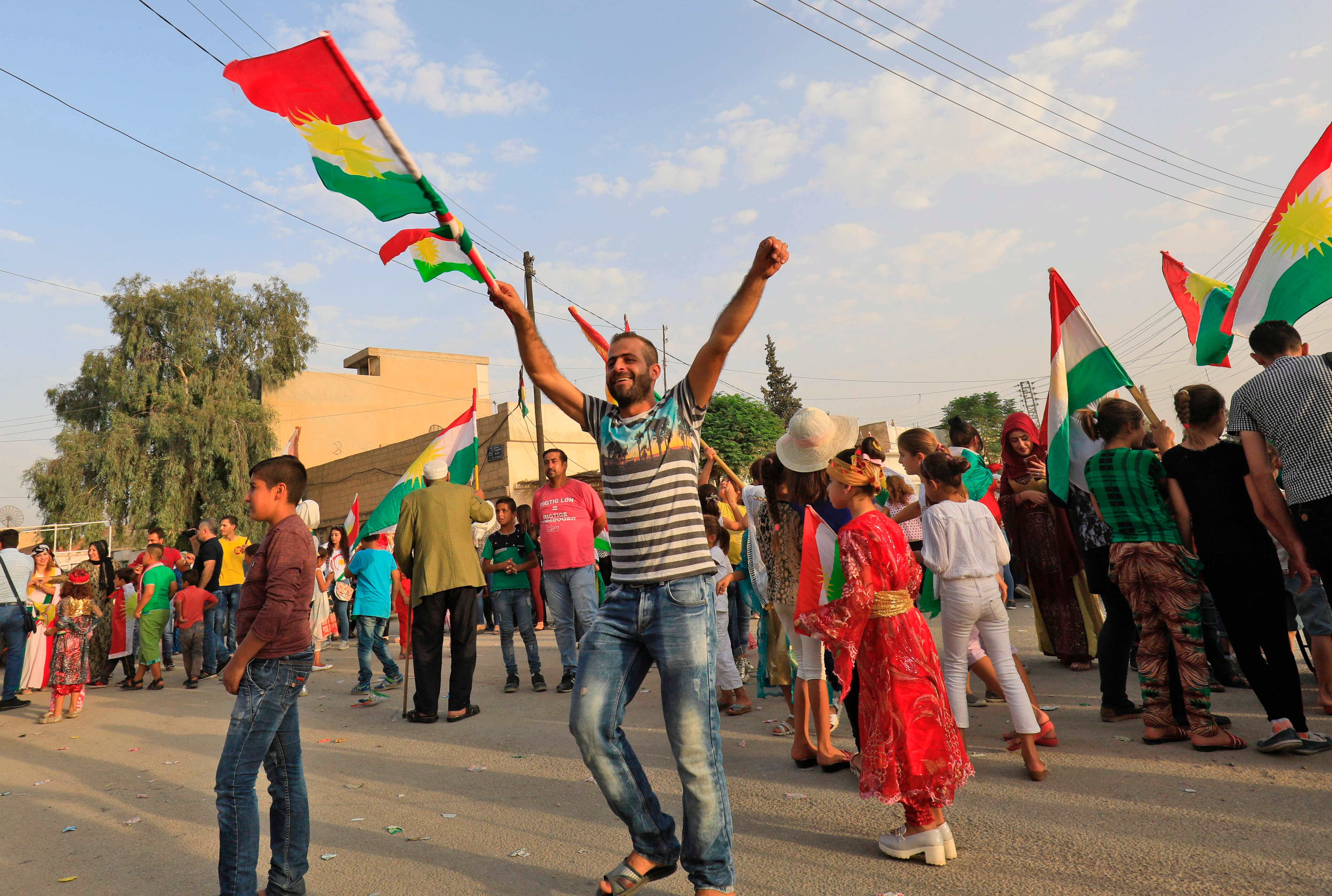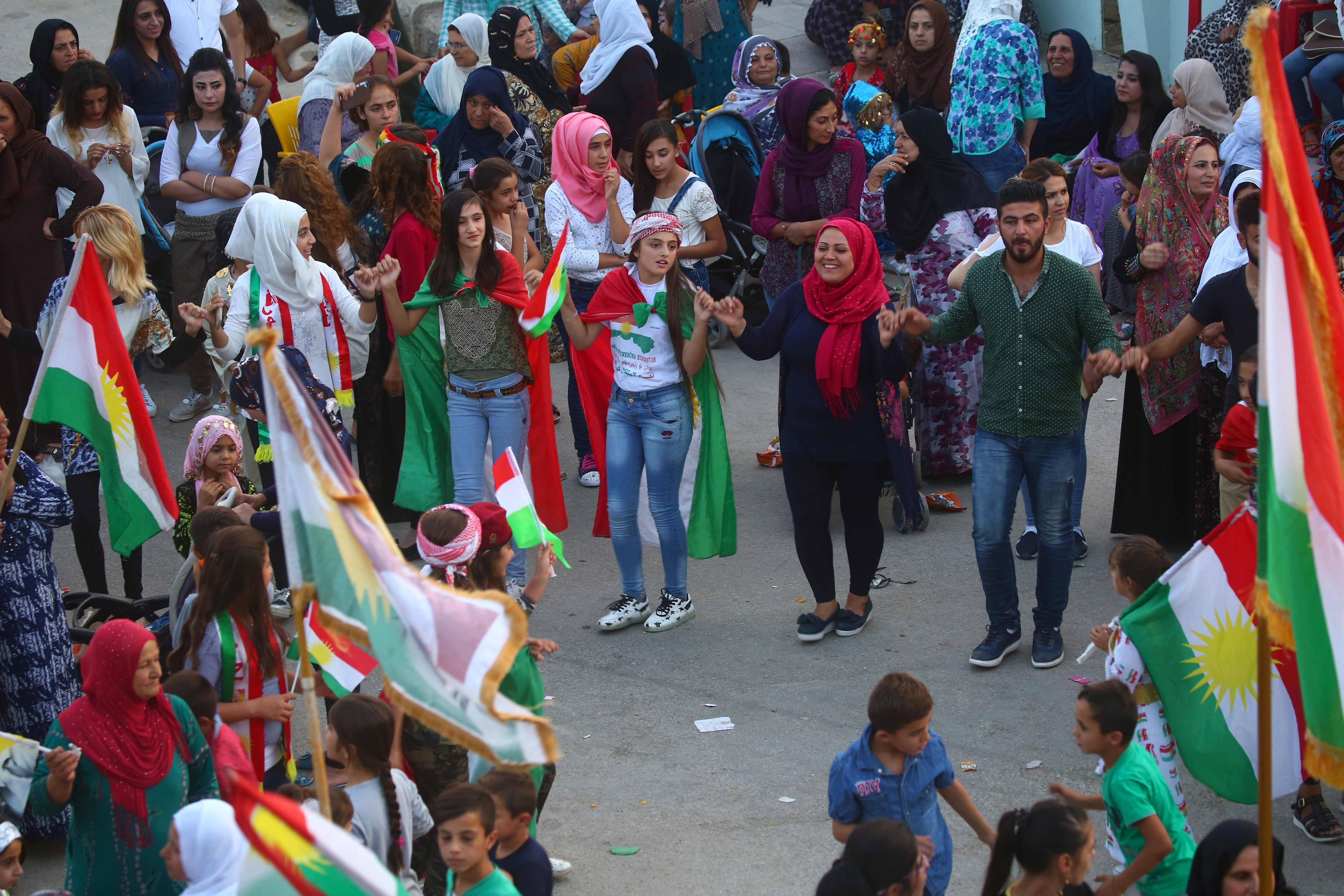 Roja 25ê Îlona hevdem li gel birêveçûna referanduma serxwebûna Başûrê Kurdistanê, li bajarê Qamişlo yê Rojavayê Kurdistanê bi sedan welatiyên Kurd ji keyfxweşiyê daketin kolanan û bi bilindkirina alên Kurdistanê û gotina dirûşmên netewî û bi dîlan û govendan encamdana referandumê pîroz kirin.