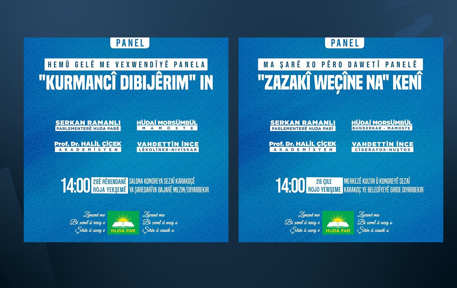 Dê panela HUDA PARê sibe demjimêr 14:00an li Navenda Çand û Hûnerê ya Sezaî Karakoçê bi rê ve biçe.