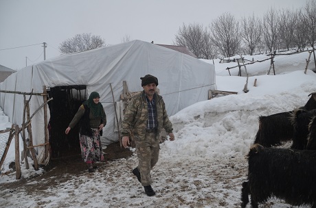 Hewlêr (Rûdaw) - Li bajarê Mûşê yê Bakurê Kurdistanê Zekî Aykut û malbata wî ji bo xwedîkirina ajelan xwe ku di konê naylon de dijîn.